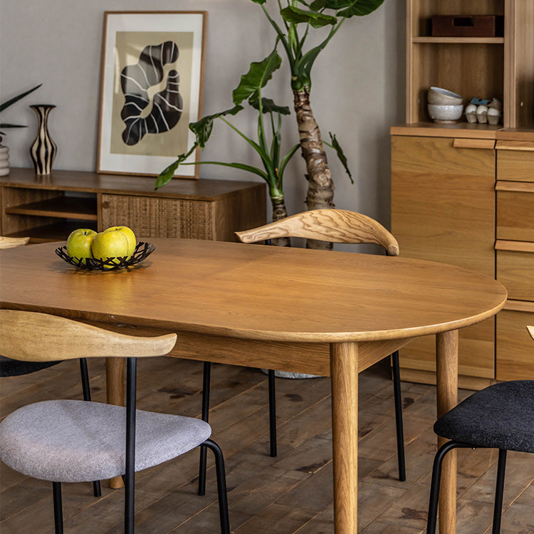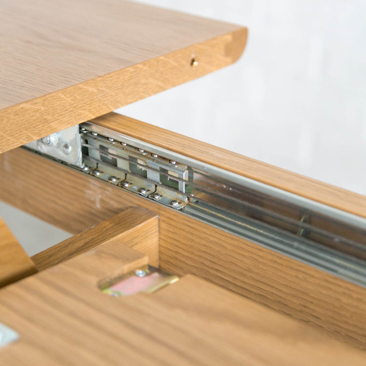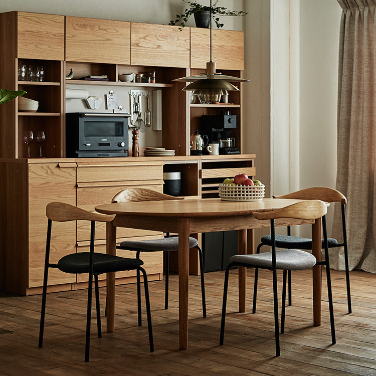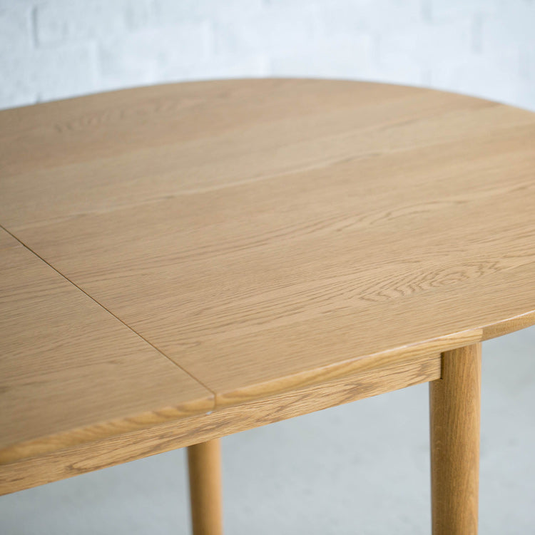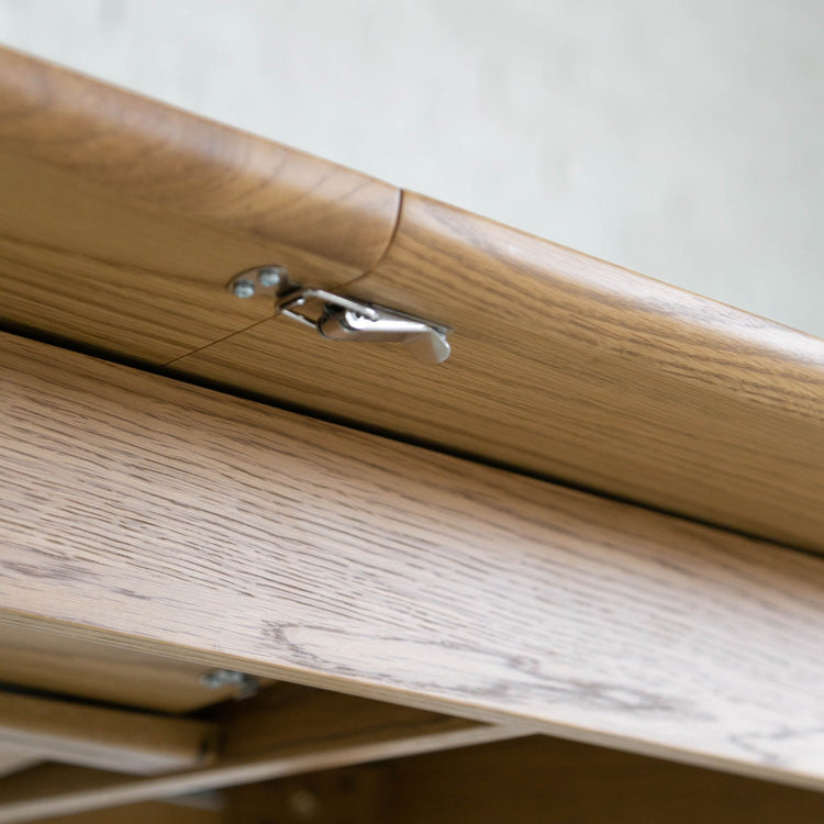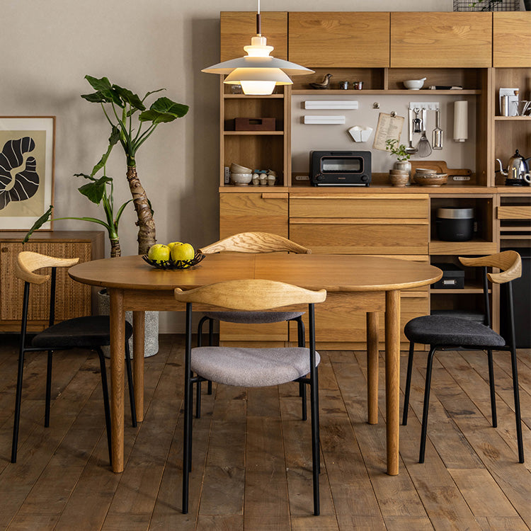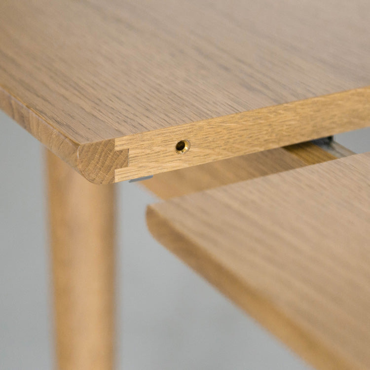 | 商品情報 | 面取りした柔らかいナチュラルな雰囲気が特徴のダイニングテーブルです。テーブルの端を引いて、中央から天板を取り出し伸長することができます。来客がある際など用途に合わせて伸長させてください。 |