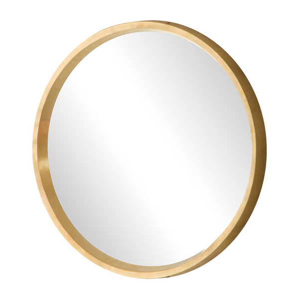 コンテンポラリーなゴールドフレームの壁掛けミラー。