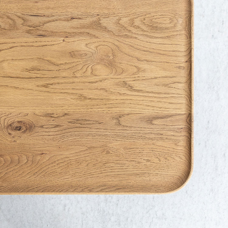 オイル塗装は水分・油分に弱く、長時間放置すると輪ジミやシミの原因になります。木材の表面に施した、無垢の風合いを活かした仕上げです。