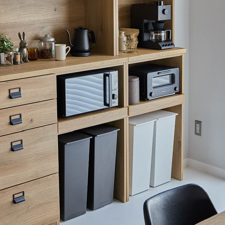 商品情報 ダストボックスの収納スペースの確保を前提に企画された収納ユニットです。 置き場所に対する悩みの多いダストボックス、それらをキッチンスペースで綺麗に納められるように設計しました。 自由度が高く、間取りや使い勝手に応じて組み換えが可能なユニットタイプです。