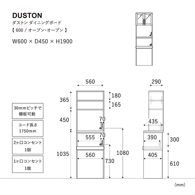ダストン ダイニングボード 60cm(上台:オープンガラス戸 下台:オープン)[hny]