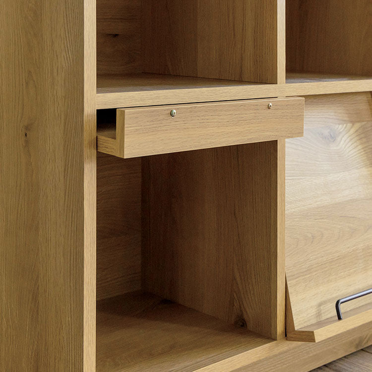 | 商品情報 | オークを基調としたナチュラルな木の風合いを、黒のスチールパーツで引き締めたスタイリッシュでナチュラルなフラップ扉キャビネット。お気に入りの本などを飾って、自分好みのレイアウトを楽しんでください。 |