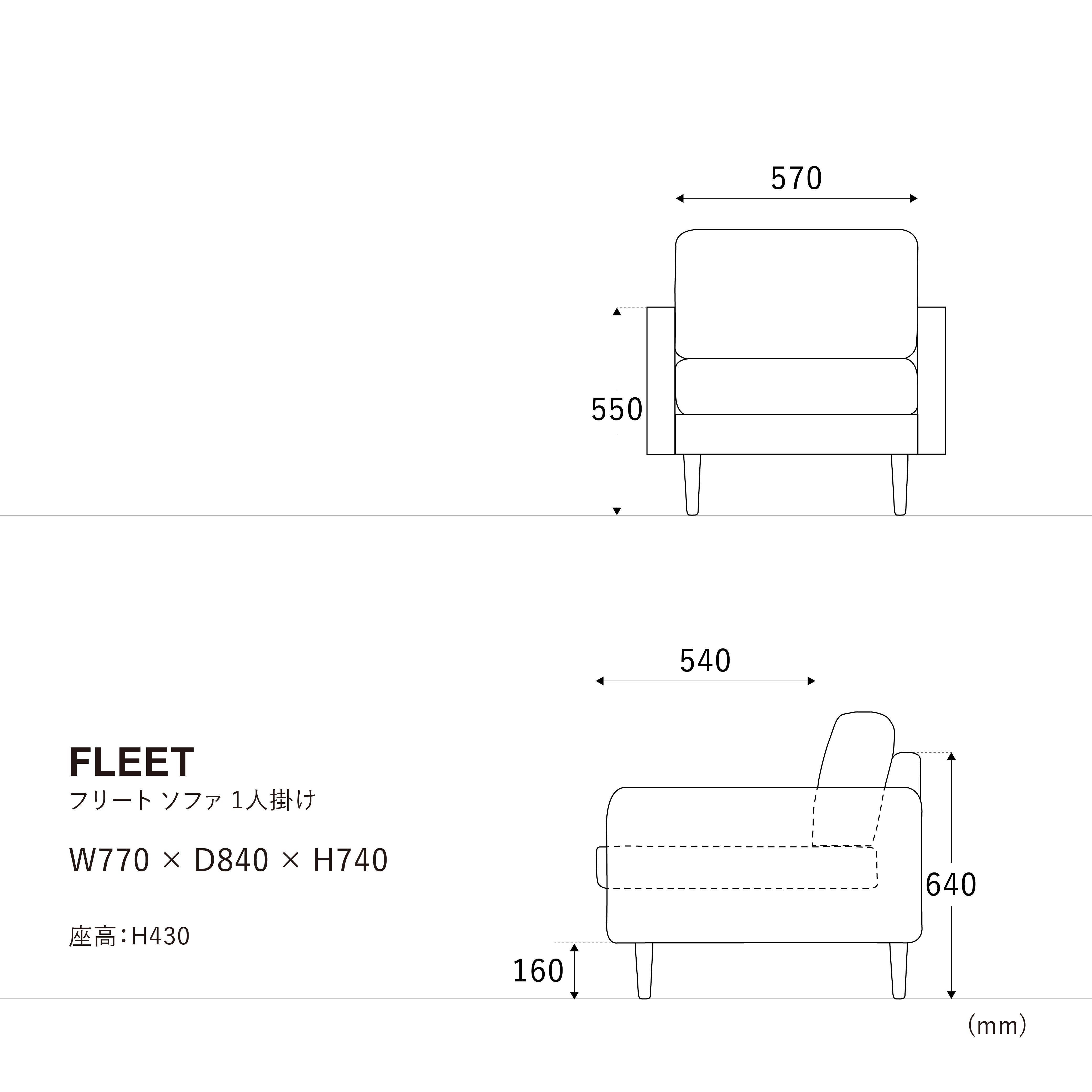 | 座面内寸 | W570xD530 |