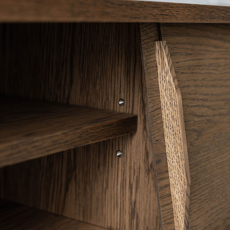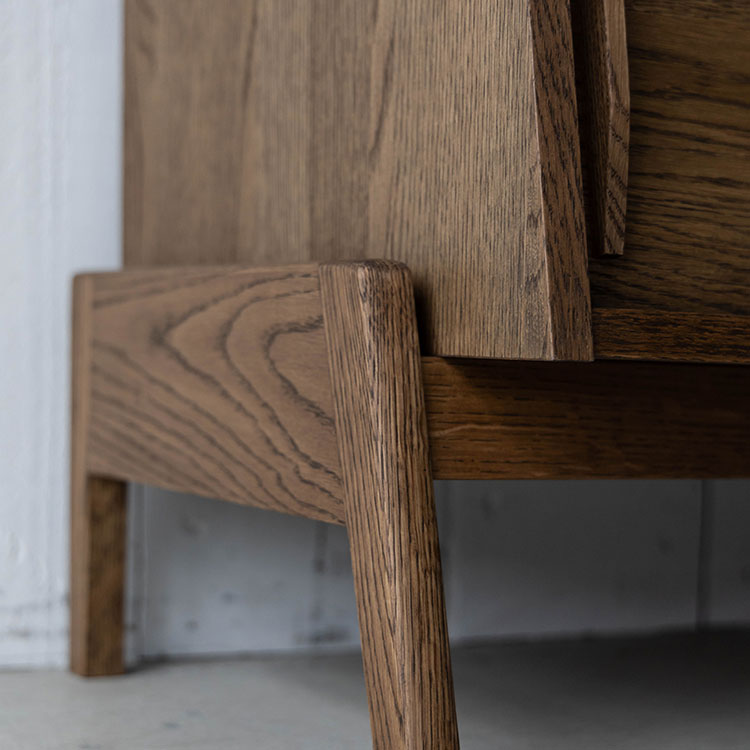 CRASHでは木材に節があるものを使用しています。最低限の加工のみを行っているため、デコボコ感・ざらつきなどがありますが、天然木ならではの雰囲気を味わえる仕様になっております。また木の成長段階によって大きさ、形も様々になっております。節の取り扱いは難しく、使わないメーカーもある中で私たちは限りある資源への配慮と天然木ならではの生命力を感じられるものとして、節を活かしたモノづくりを行っております。