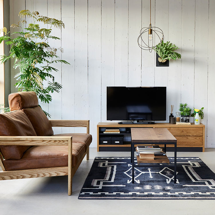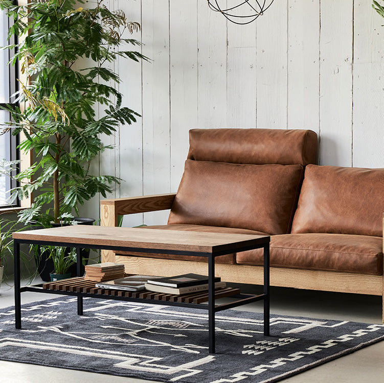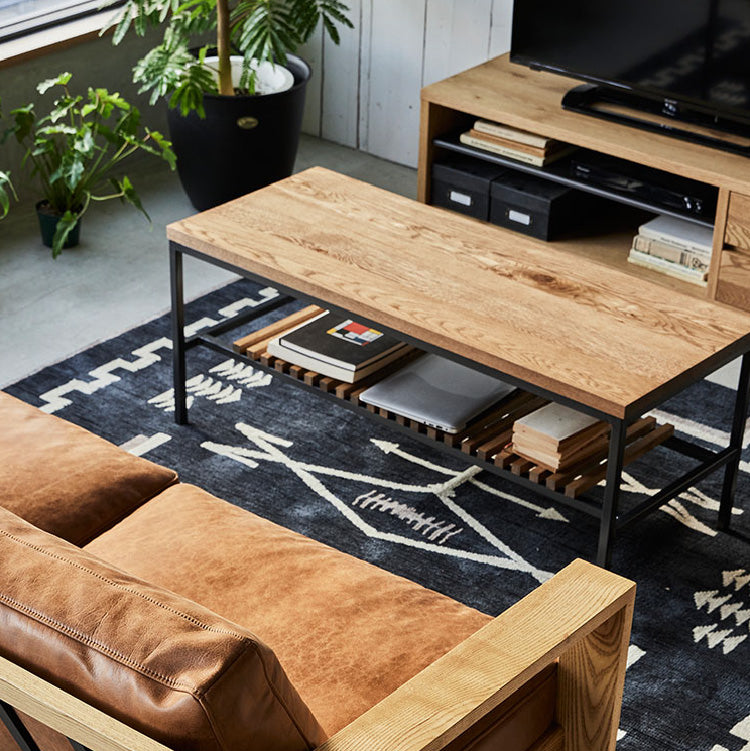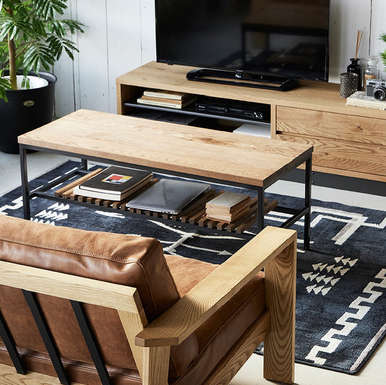| 商品情報 | 2段式のシンプルなコーヒーテーブルです。オイルで自然な風合いに仕上げ た温かみのあるオーク材を天板として使用しています。格子状の棚はリモコ ンや本など、座ったときに使うちょっとしたものを置くスペースとして活用でき ます。 |