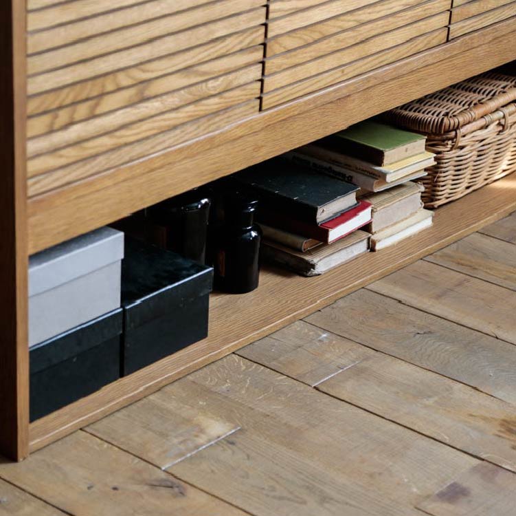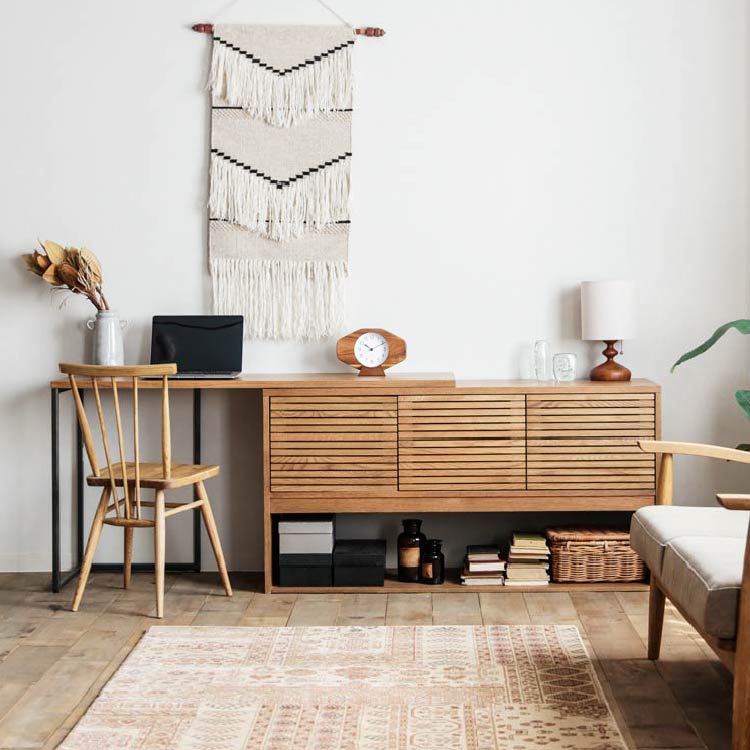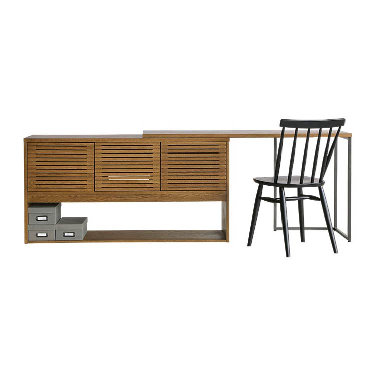 | 商品情報 | 格子が特徴的なサイドボードです。スライドテーブルを伸長させるとデスクとしてもご 利用可能です。その他にも生活に合わせて多様な使い方ができます。 |