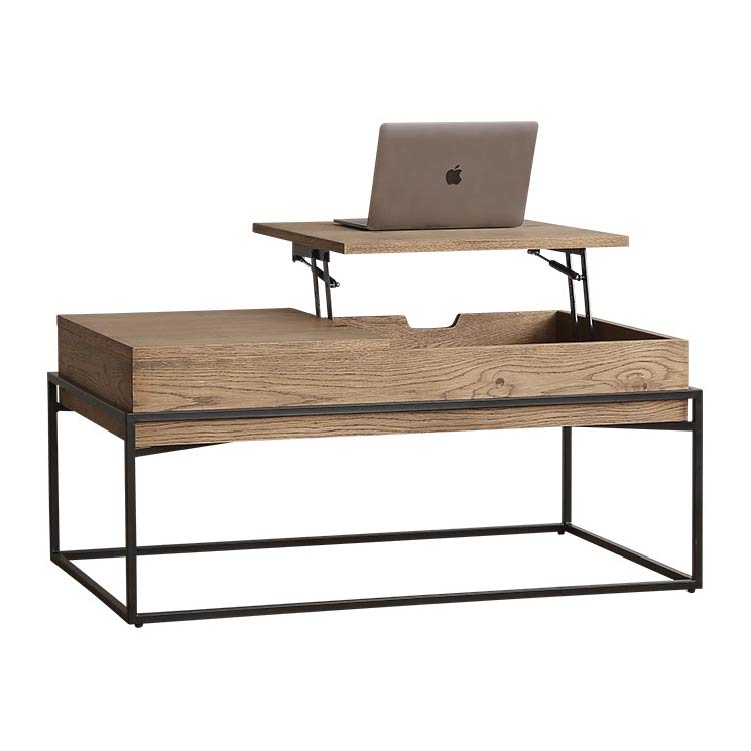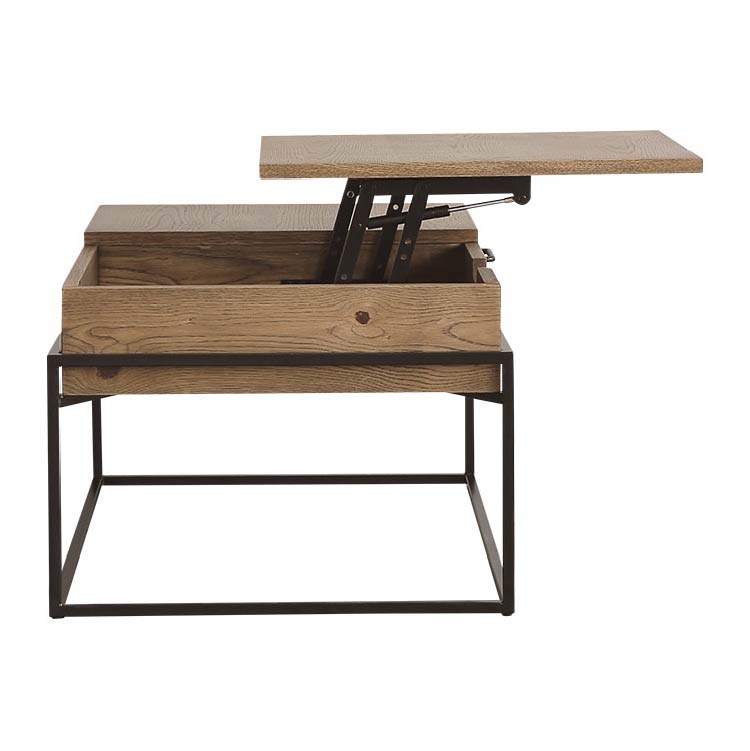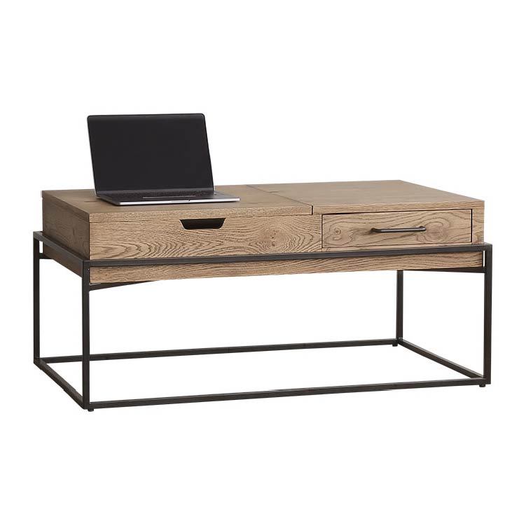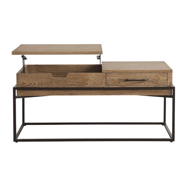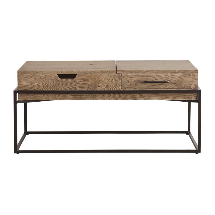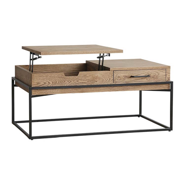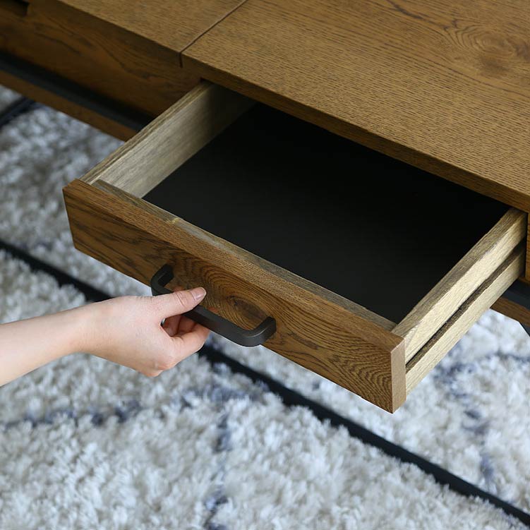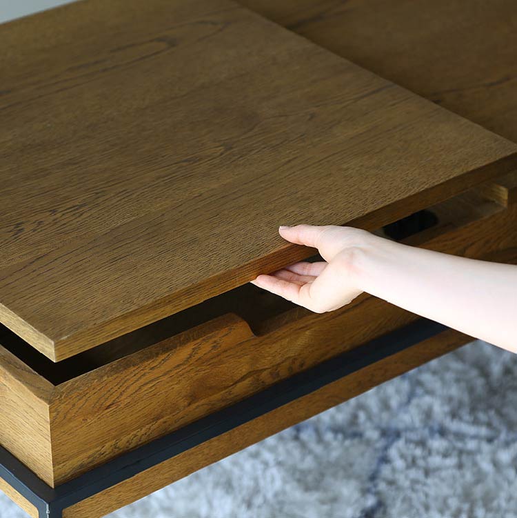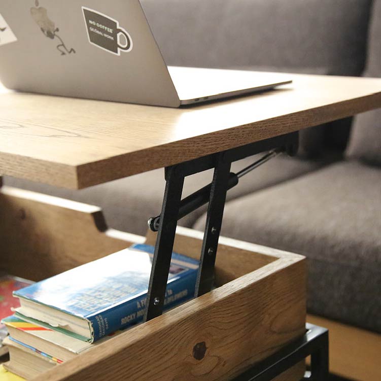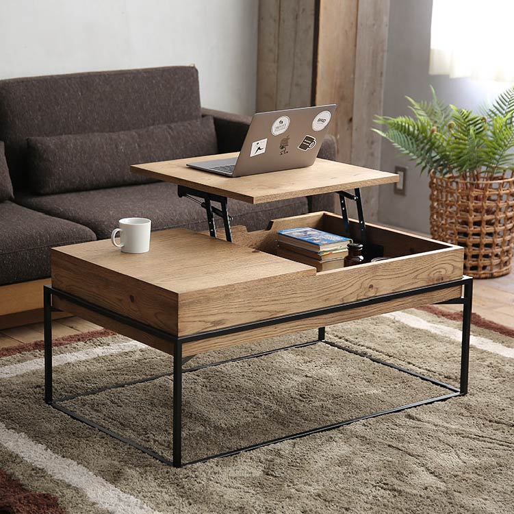 | 商品情報 | リビングでの利便性を追求した多機能なコーヒーテーブルです。天 板の片側をもちあげるとソファに座った状態でもつかいやすい高さ に昇降します。ちょっとした軽作業や食事にも便利です。昇降天板 の下は収納スペースに、また天板の片側は引出しになっているの で収納力もありテーブルの上をすっきりと保つことができます。 |