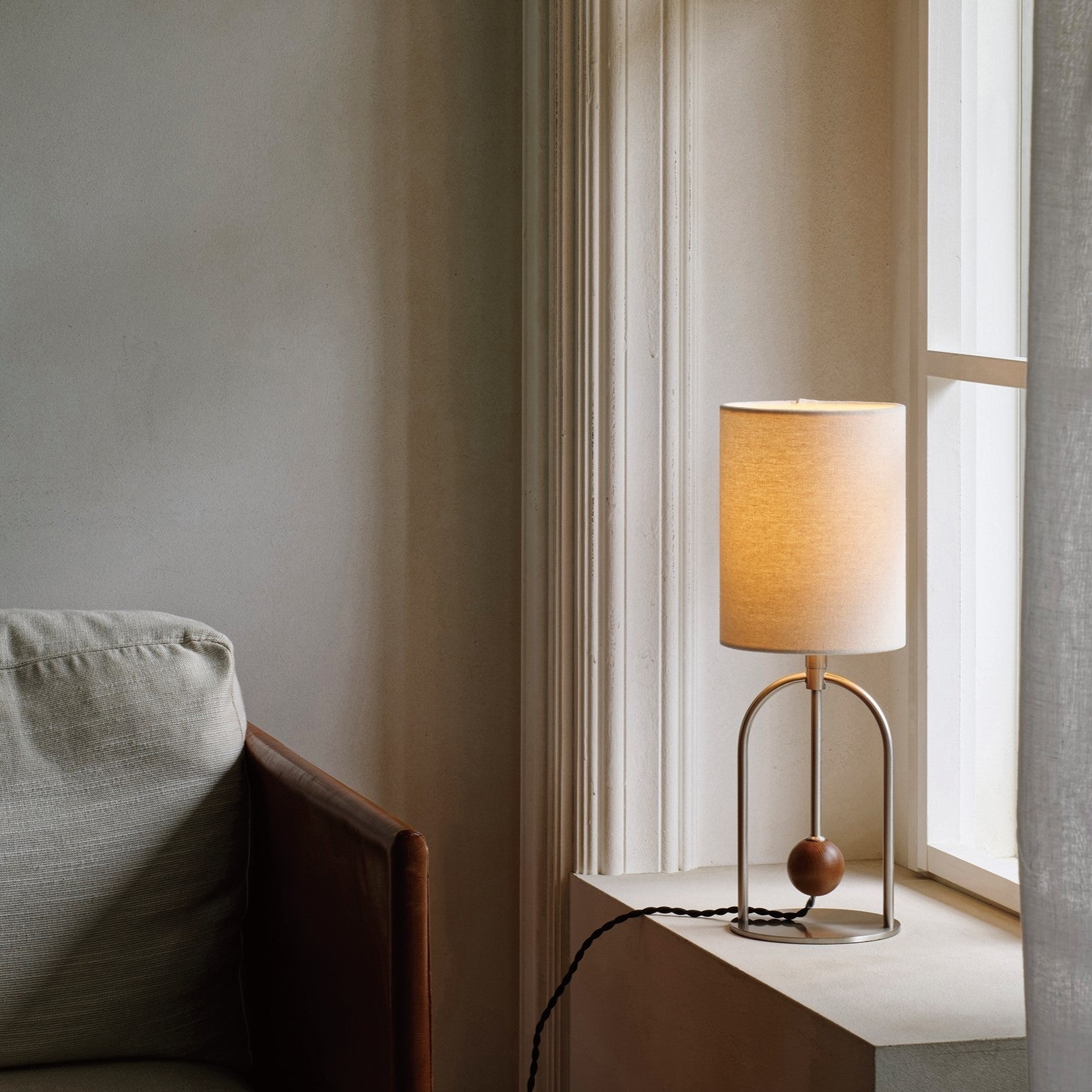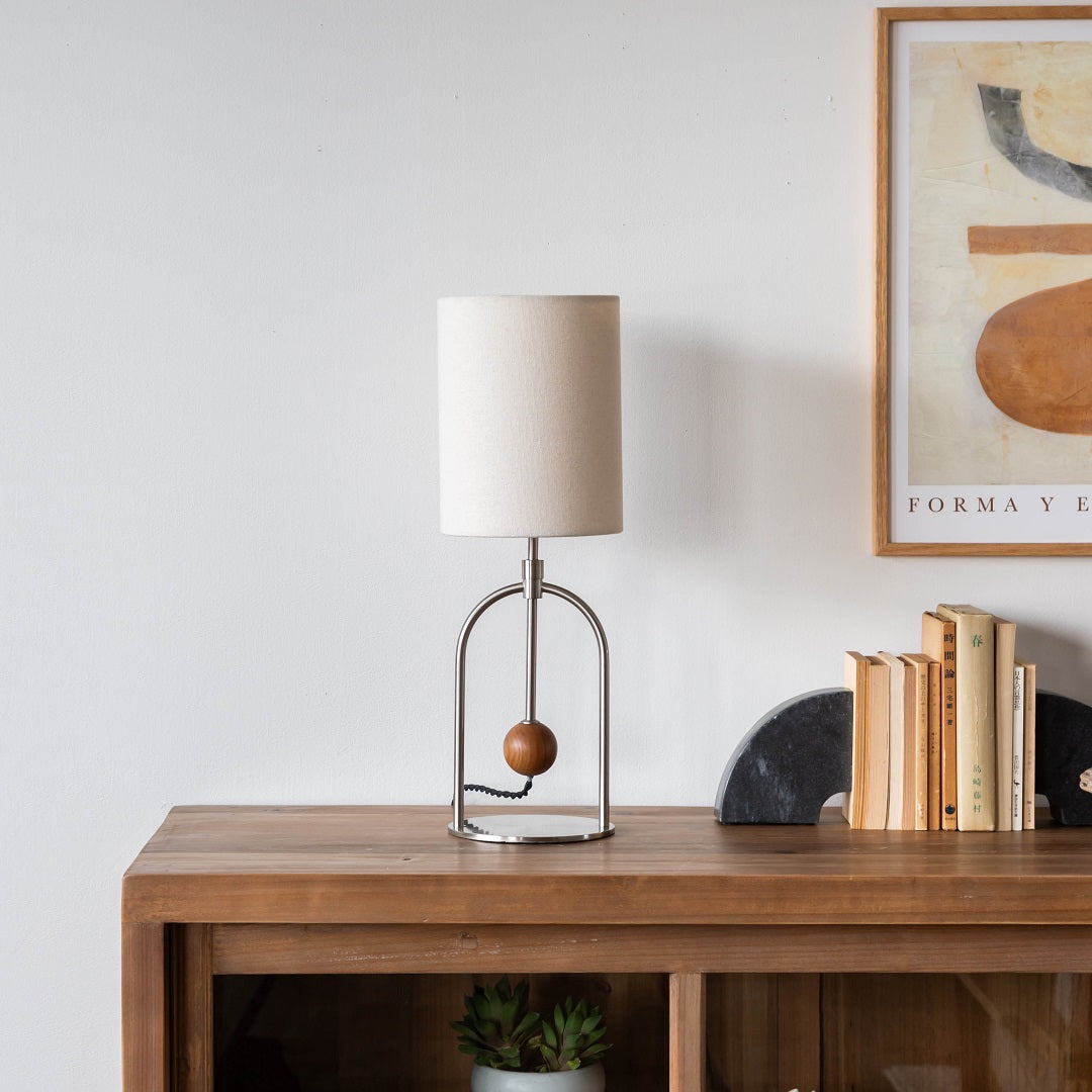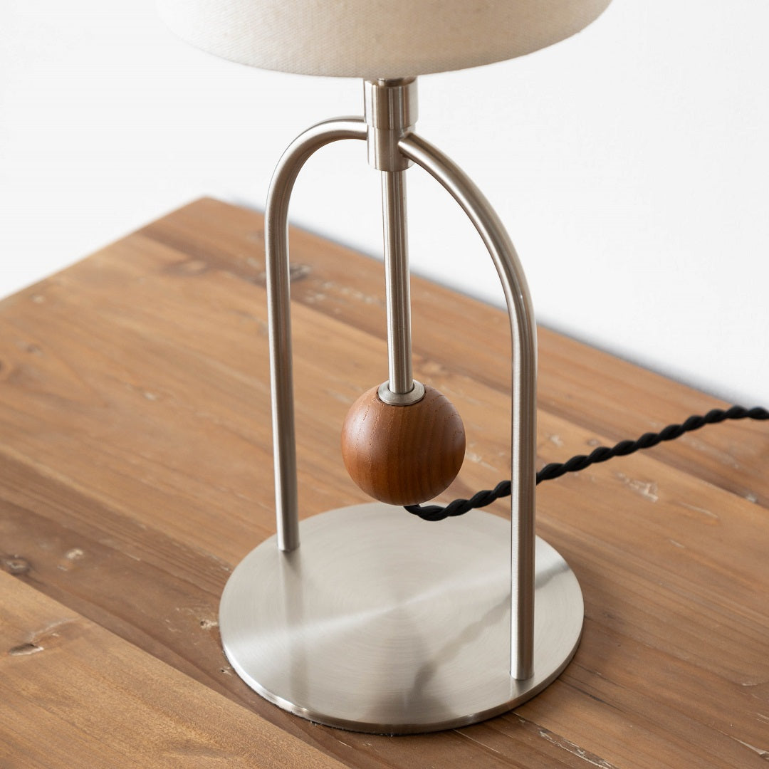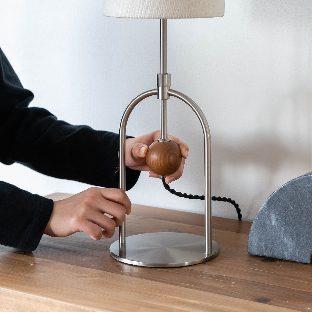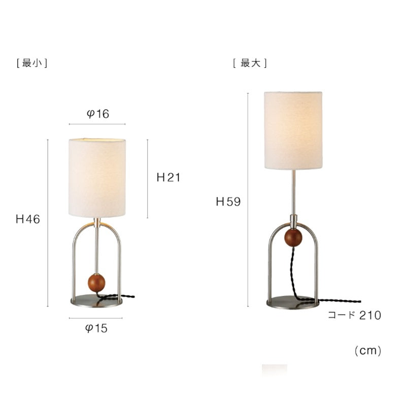 商品情報 アーチパイプとウッドボールでアクセントを効かせたモダンなデザイン。素材のコントラストをバランスよく取り入れ、抜け感のある洗練された装いに仕上げました。支柱は無段階で高さの調節ができるので、フロアライトとしてベッドサイドや和室など床での暮らしにも寄り添います。厚みのあるファブリックセードから漏れる光があたたかみのある心地よい空間を演出します。