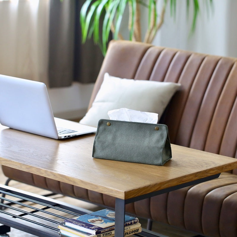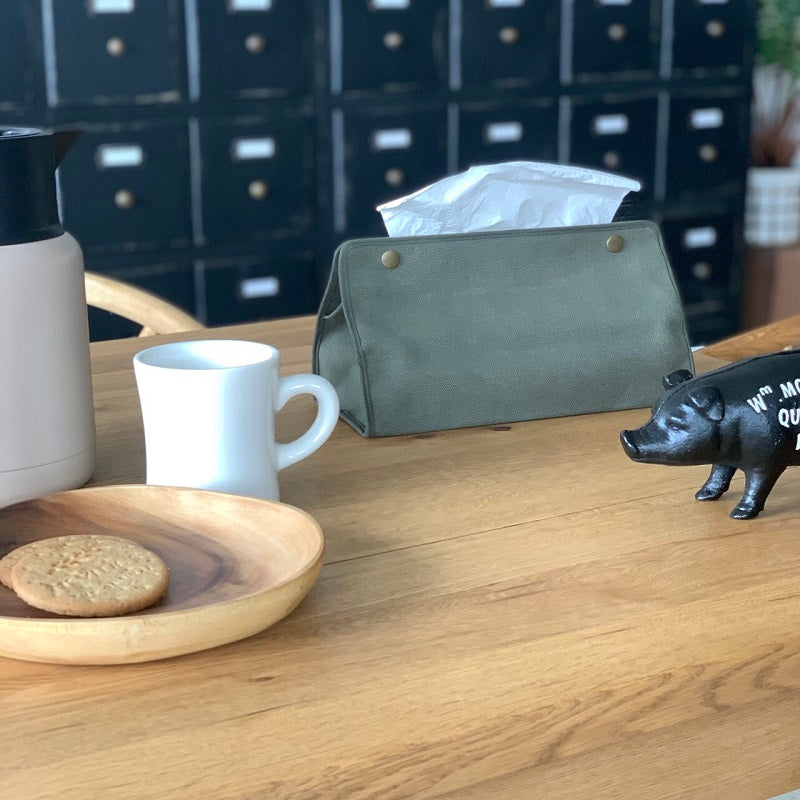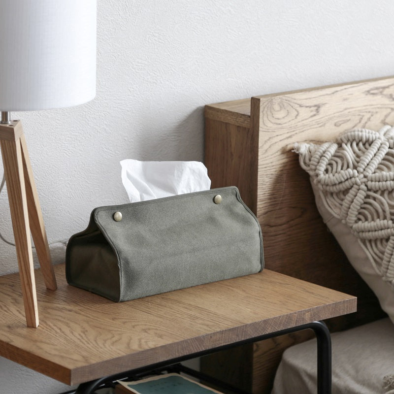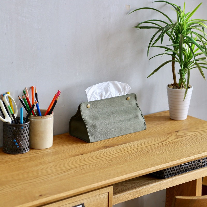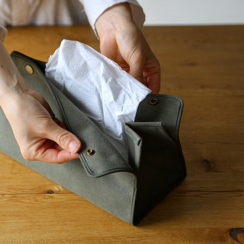 商品情報 | バイオウォッシュ加工によってヴィンテージテイストに仕上げた国産の8号綿帆布を使用したティッシュケース。 |