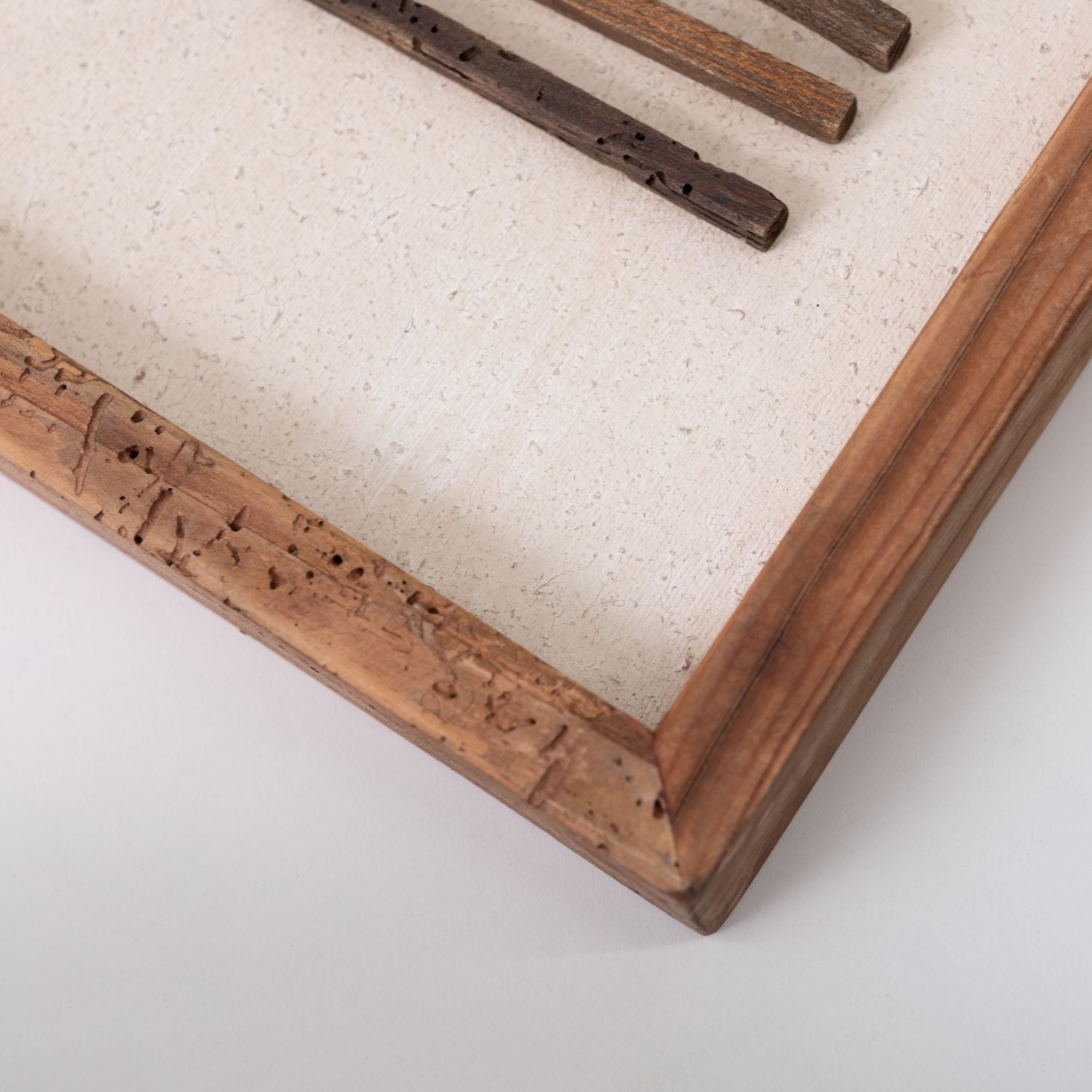 | 商品情報 | ライティングや光の当たり方で、立体的なアート影を映し、表情豊かに部屋を彩るアートボード。 ベースにはコットン素材の帆布を使用し、貼り付けられた古材や記事が存在感を放ちます。 ※古材を使用しておりますので、木部の虫食い穴や傷、個体差については本製品の特性としてご理解ください。 |