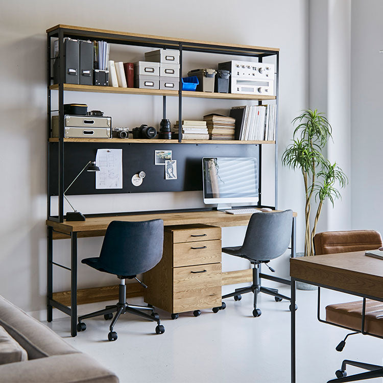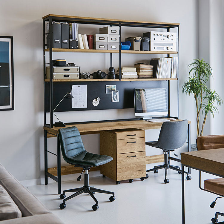 | 商品情報 | ヴィンテージ調の革のようなファブリックとスチールを組み合わせたデスクチェア。丸みのあるフォルムとクッション性のある座りで、しっかりと腰をホールドしてくれます。昇降レバーでお好みの高さに調整いただけます。 |