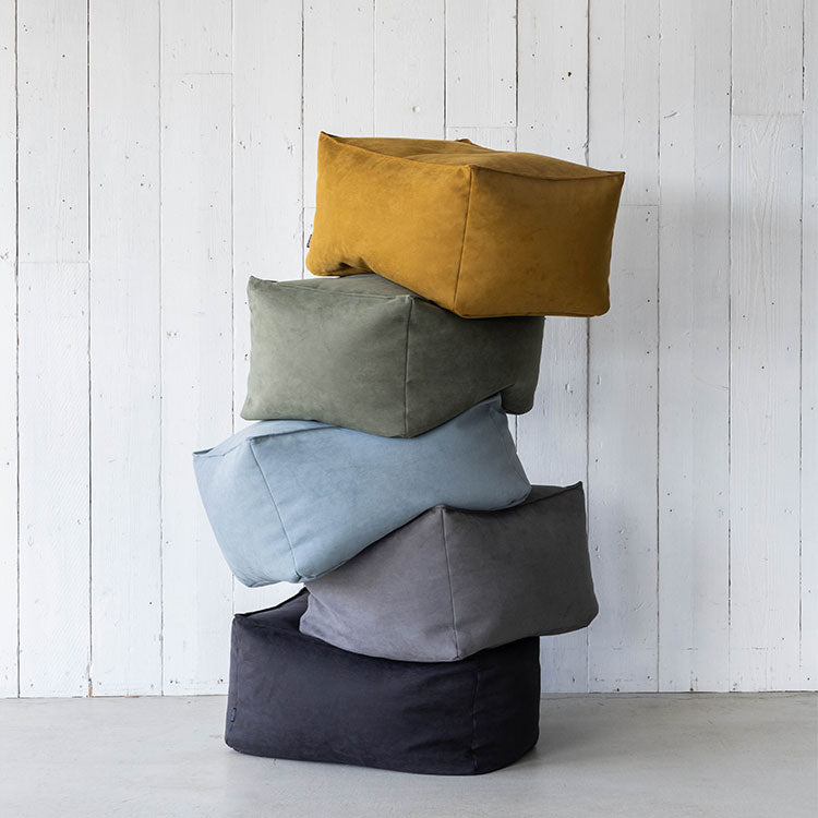 | 商品情報 | ふんわりと心地よく身体を受けとめる、 スツール型のビーズクッションです。コンパクトながら座りやすく姿勢をキープしやすいソファデザインに仕上げています。滑らかで上品なスエード風の定番生地5色と、上質な本革風の別注生地2色の多彩なバリエーション。 |