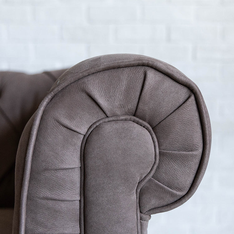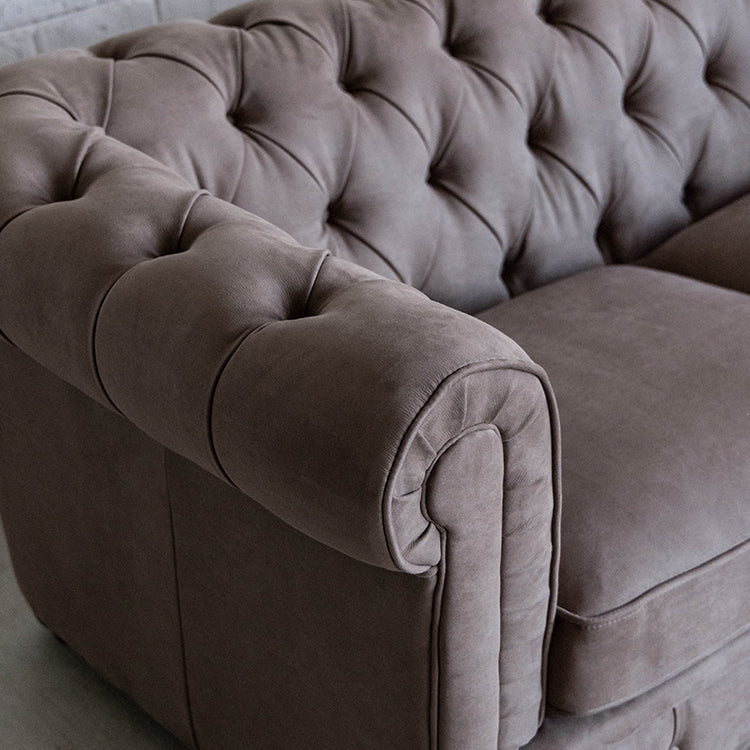 | 商品情報 | 立体的な縫製に深くボタン留めされた背もたれ、丸まった形のアームは書斎やリビングに重厚感と高級感を演出してくれます。 適度な柔らかさで長時間座っていても疲れにくく、リラックスして座れるソファとなっています。 |