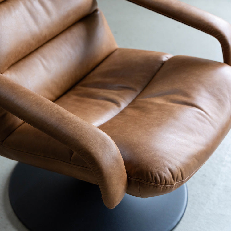 商品情報 革の風合いを表現したボンデッドレザーファイバーを使用し、脚にスチールを使った重厚感のあるソファ。座面が回転するため、座ったまま体の向きを変えられます。モダンやカジュアルといった幅広いテイストに合わせやすく、雰囲気を引き締めてくれます。