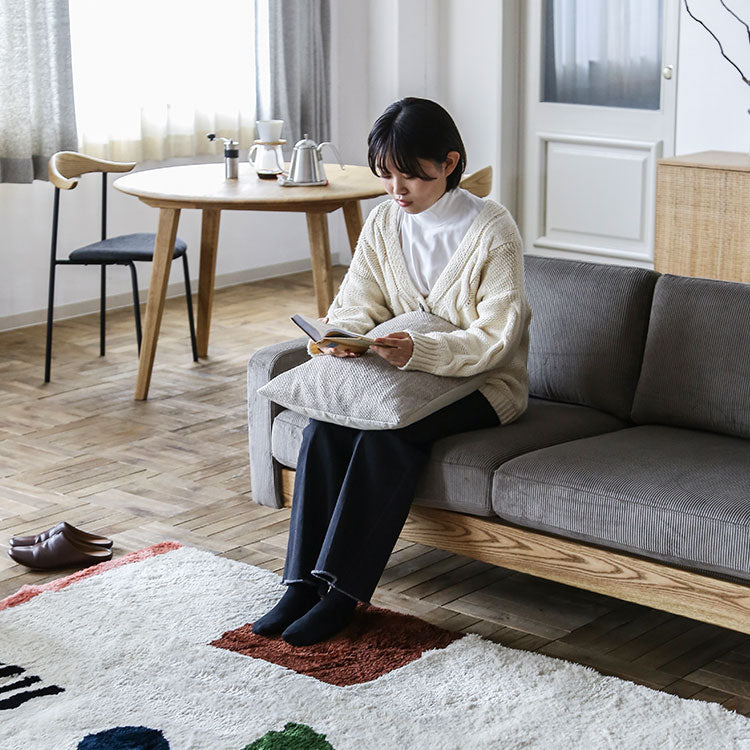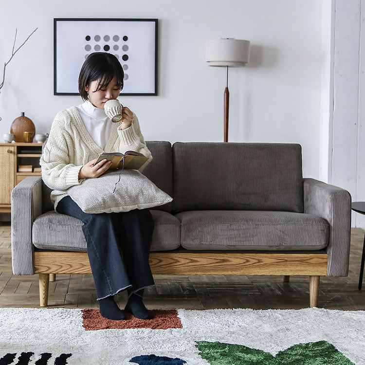 | 商品情報 | モダンな佇まいと優しい風合いが感じられる、シンプルでスタンダードなデザインのソファです。ナチュラルながらも可愛すぎないマニッシュな仕上がりが特徴です。 |