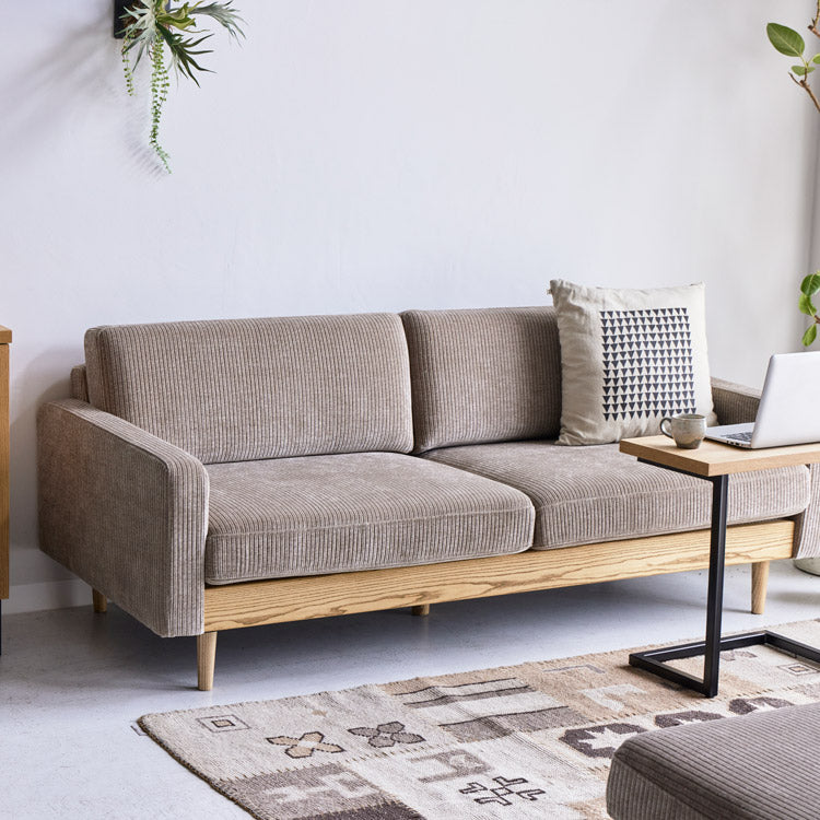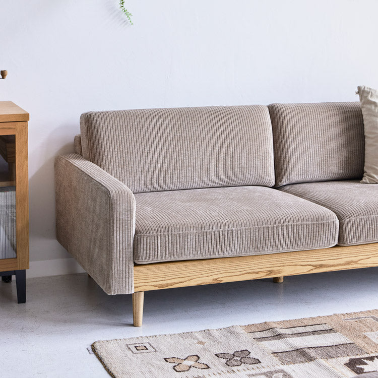 | 商品情報 | モダンな佇まいと優しい風合いが感じられる、シンプルでスタンダードなデザインのソファです。ナチュラルながらも可愛すぎないマニッシュな仕上がりが特徴です。 |