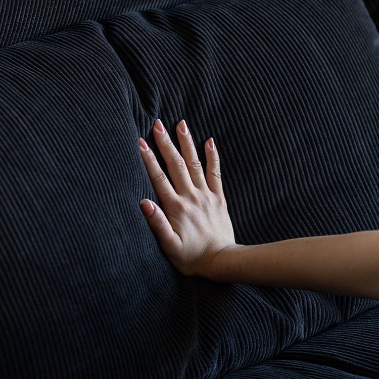 開梱時に稀に表面のシワ、変形等が見られる場合がありますが、輸送中におこったものなので、ご使用されるうちに自然に回復します。また、叩いたり張地を軽く引っ張ると回復も早くなります。