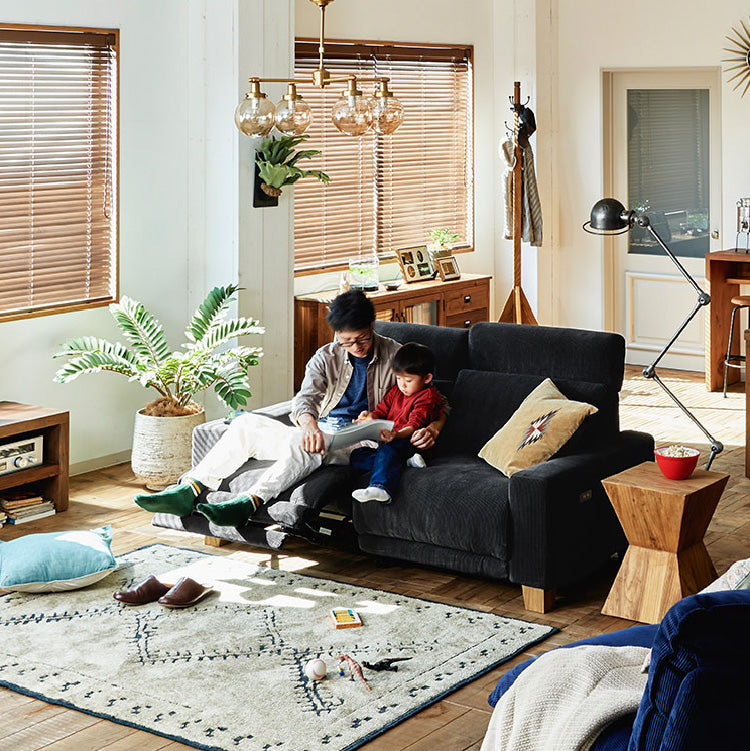 | 商品情報 | 肘横のスイッチでリクライニングができるソファです。フッドレストのリクライニングはスマートな巻き込み式を採用しました。クッションにはフェザーがたっぷり入っているので、包み込まれるような柔らかな座り心地でゆったりとくつろぐことができます。 |