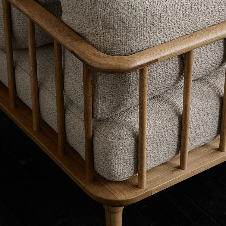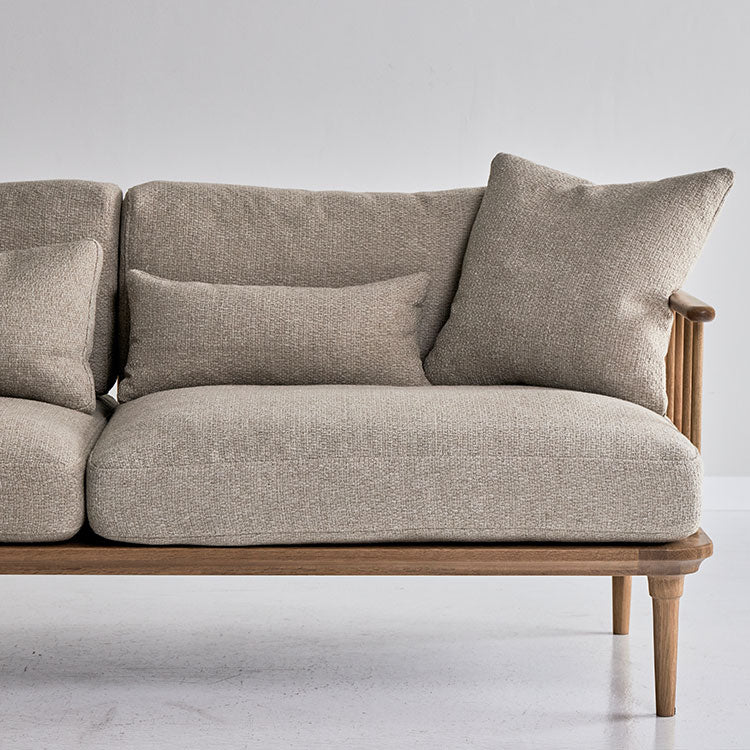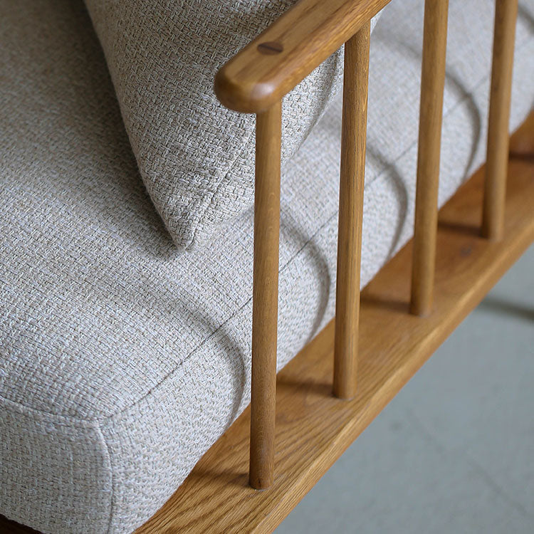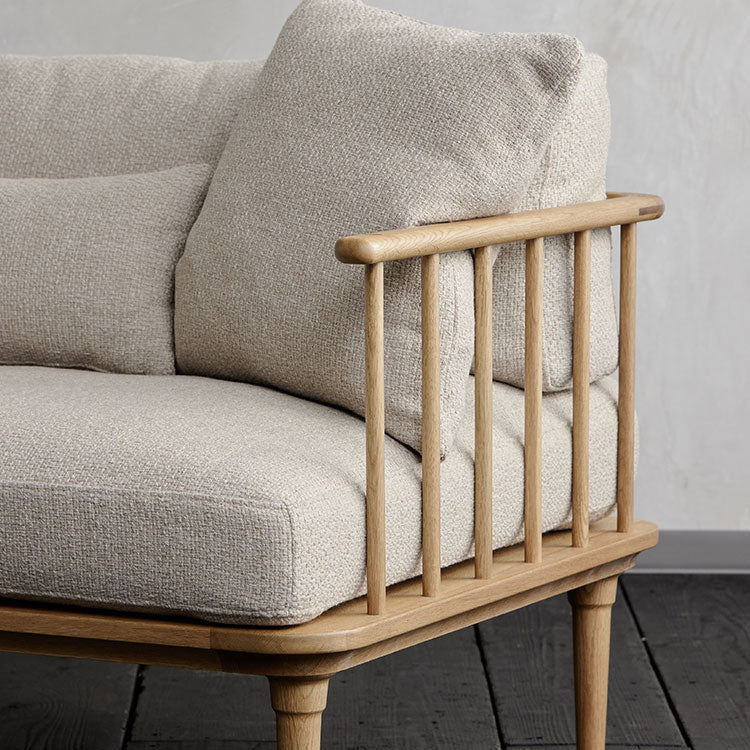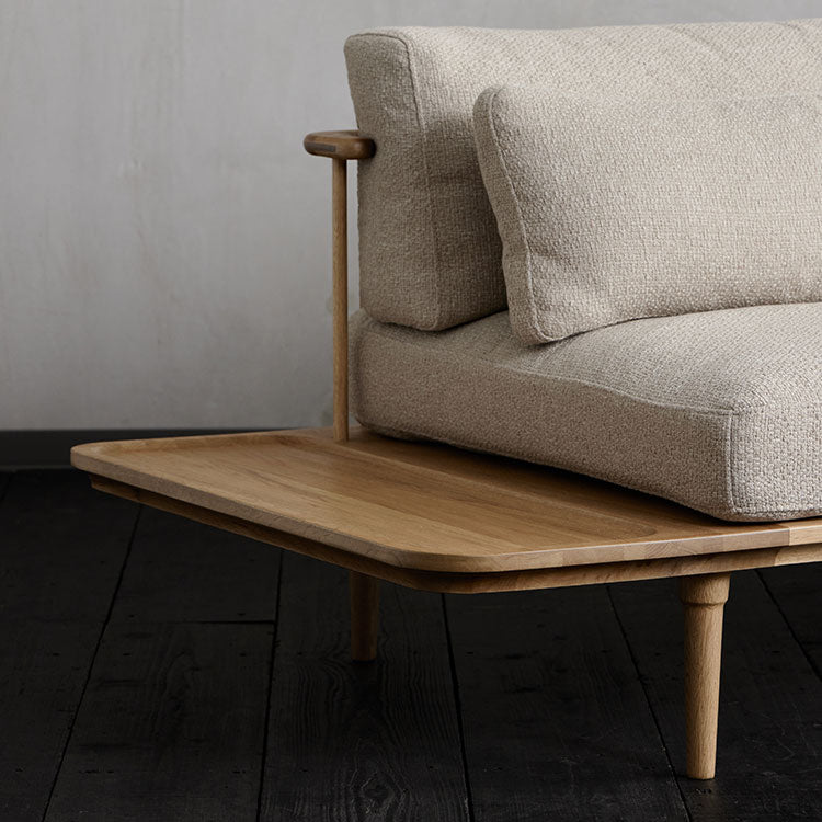 商品情報 格子状のフレームと様々なクッションの組み合わせが目を惹くソファです。OAK-LBRはナチュラルな木製脚を、OAK-BRには真鍮を施した鉄脚を採用しています。フェザーを使ったクッションは身体に馴染むように沈み、付属のクッションでさらにリラックス感のある座りをつくります。GRACE生地は水分の染み込 みや汚れに強い高機能素材です。ペッ トボトルを再利用した、エコロジーな手段で作られています。