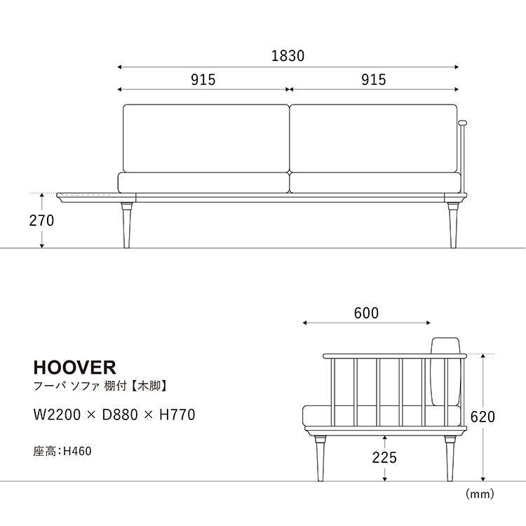 商品サイズ 幅220.0 × 奥行88.0 × 高さ77.0cm