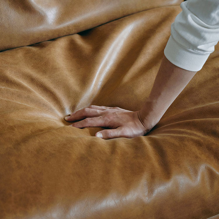 開梱時に稀に表面のシワ、変形等が見られる場合がありますが、輸送中におこったものなので、ご使用されるうちに自然に回復します。また、叩いたり張地を軽く引っ張ると回復も早くなります。