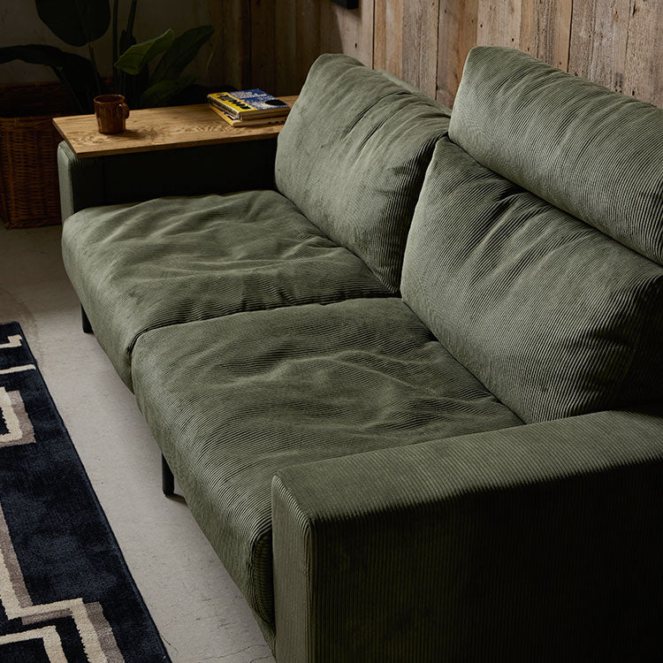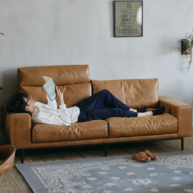 | 商品情報 | 贅沢にたっぷりとフェザーを使い、身体に馴染むようにくったりと沈み込む座り心地が特徴のソファ。 ヴィンテージソファのルーズな張り感をイメージした座面に、すっきりとしたブラックスチール脚のコントラストをきかせました。 ゆったりとした奥行きと、幅広で低めの肘置きがくつろぎの時間を演出します。 |