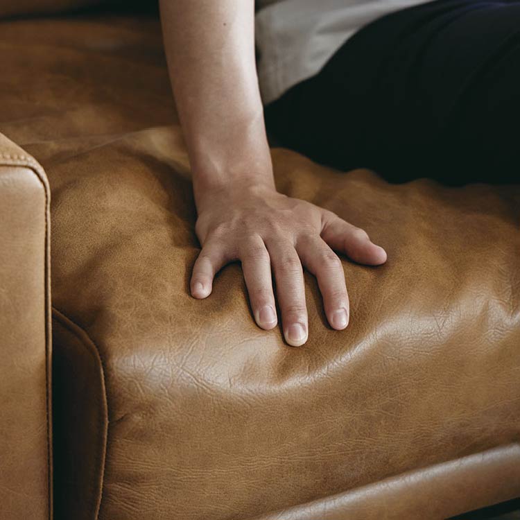 開梱時に稀に表面のシワ、変形等が見られる場合がありますが、輸送中におこったものなので、ご使用されるうちに自然に回復します。また、叩いたり張地を軽く引っ張ると回復も早くなります。