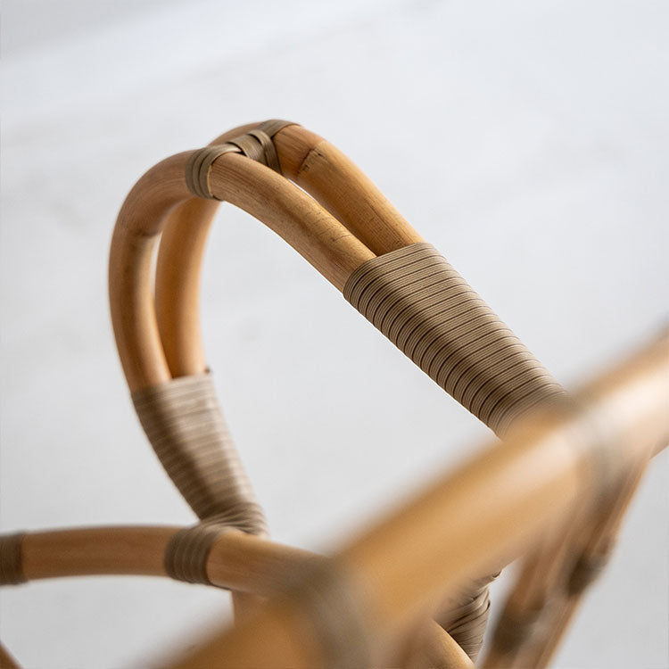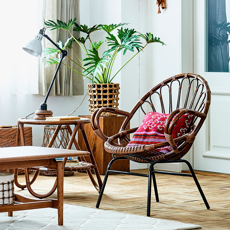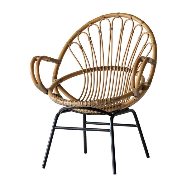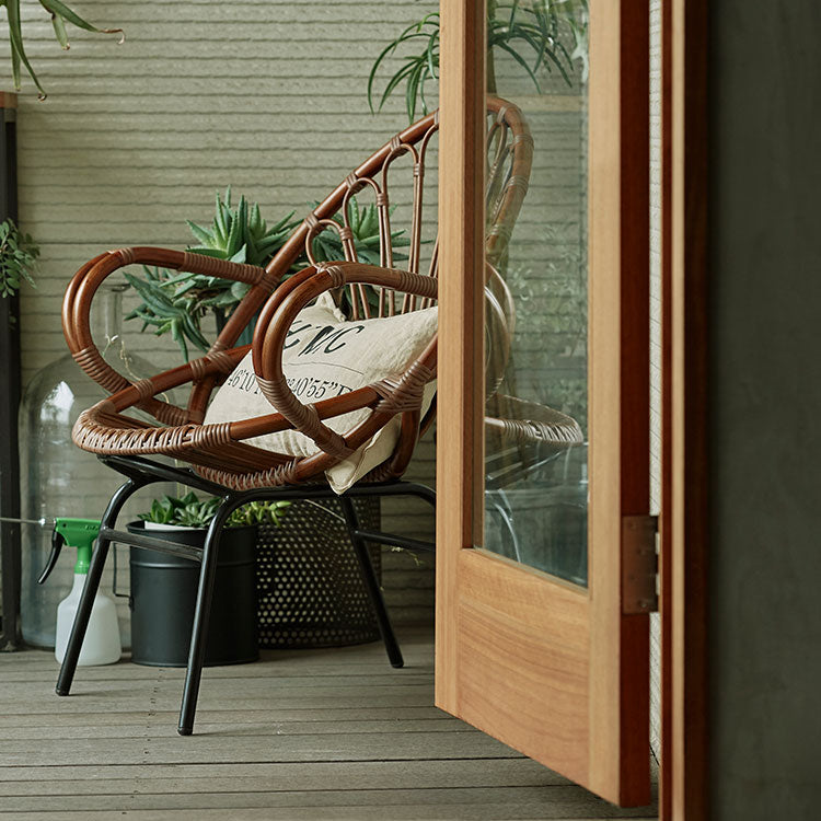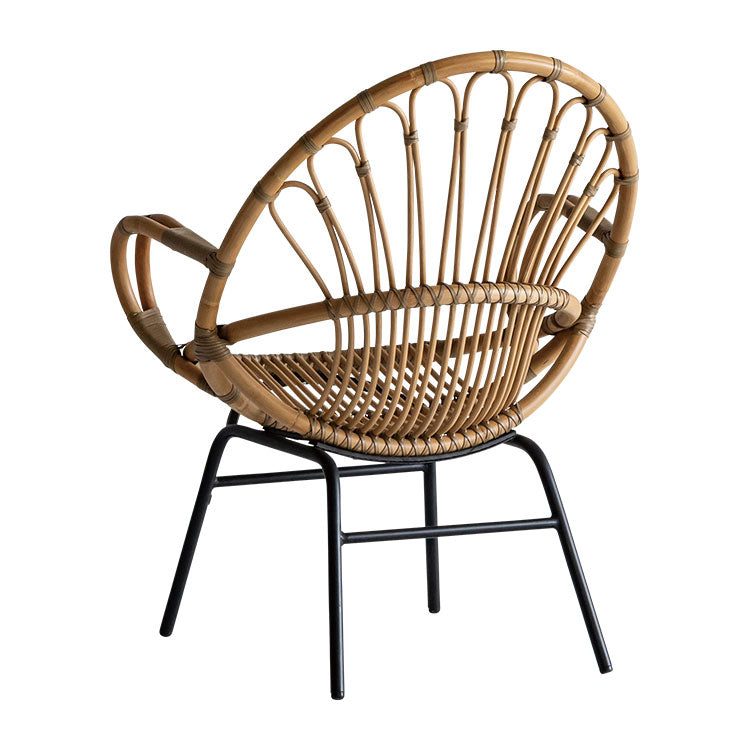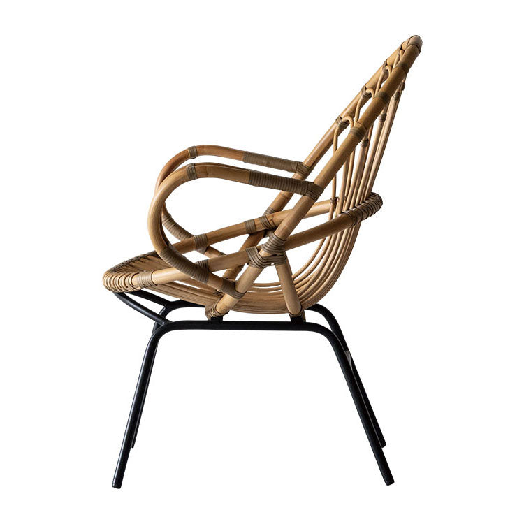 商品情報 ゆったりと流れる時間や音、読書のひと時に。ラタン×アイアンのカジュアル な肘付きラウンジチェアです。