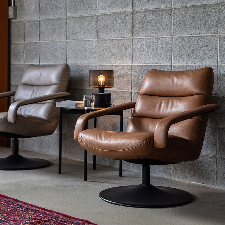 | 商品情報 | 革の風合いを表現したリサイクルレザーを使用し、脚にスチールを使った重厚感のあるソファ。 座面が回転するため、 座ったまま体の向きを変えられます。 モダンやカジュアルといった幅広いテイストに 合わせやすく、雰囲気を引き締めてくれます。 |
