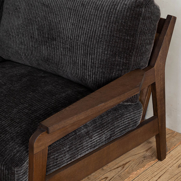 | 商品情報 | 深みのある色味に仕上げたオーク材とスチールのフレームに、身体をしっかりと受け止める大判のクッションを組み合わせたソファ。 重厚感のあるフォルムにこだわり、 360度どこから見ても洗練された印象を与えます。 |