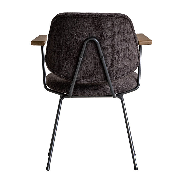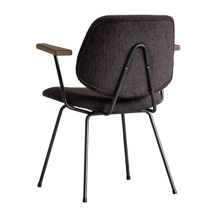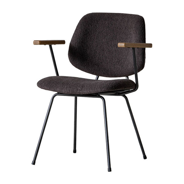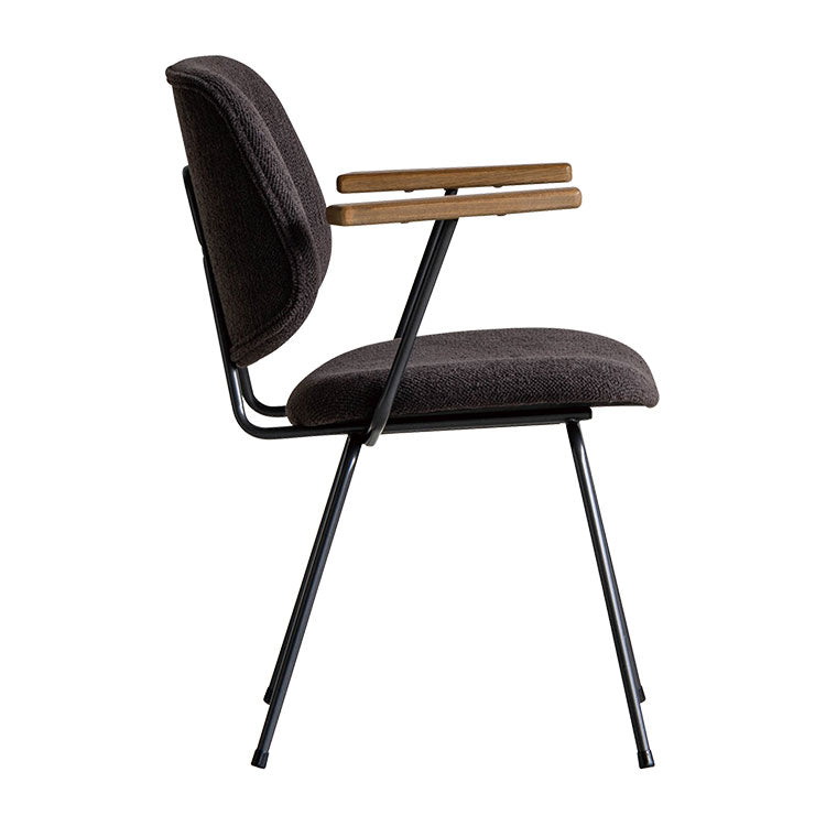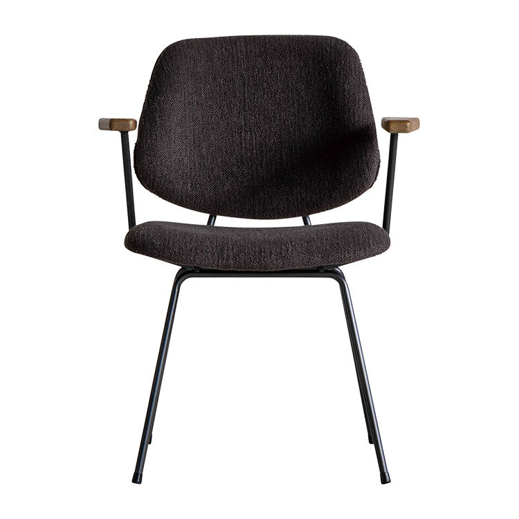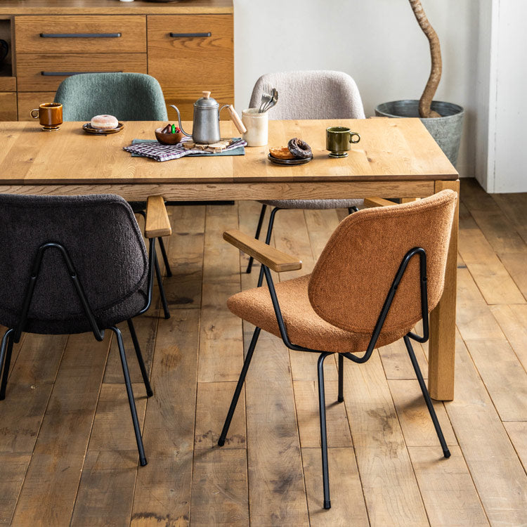 | 商品情報 | ミッドセンチュリーデザインをベースにしたチェア。当時をイメージしたレトロさ とモダンな雰囲気を取り入れました。エッジの効いたスチール脚と木製の肘 置き、背のパイピングなど細部のディティールもこだわっています。背と座の シートが優しくしっかりとホールドしてくれる座り心地です。 |