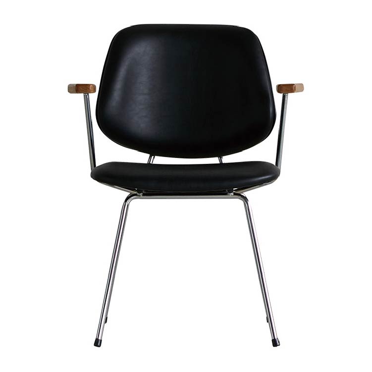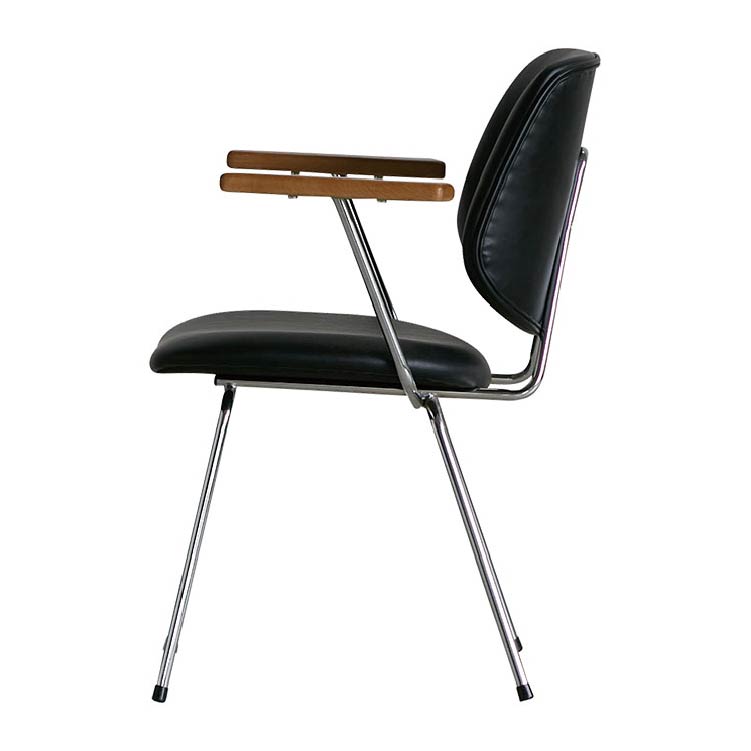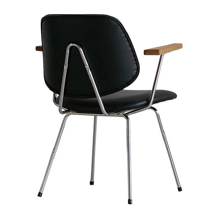 アボック ダイニングチェア 肘付 クロム脚 PUレザーブラック
