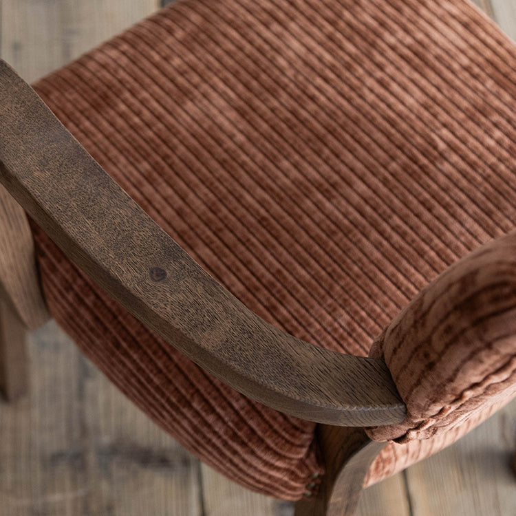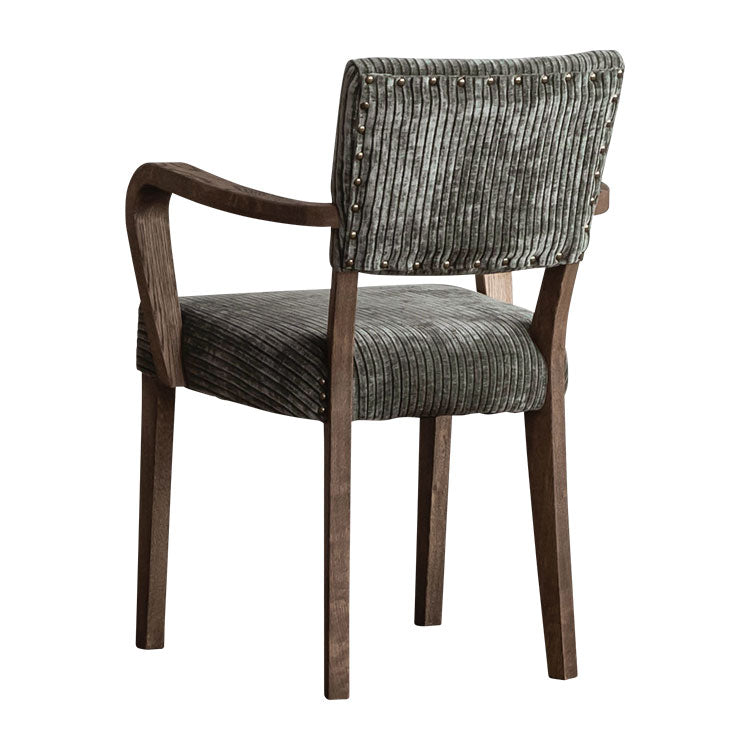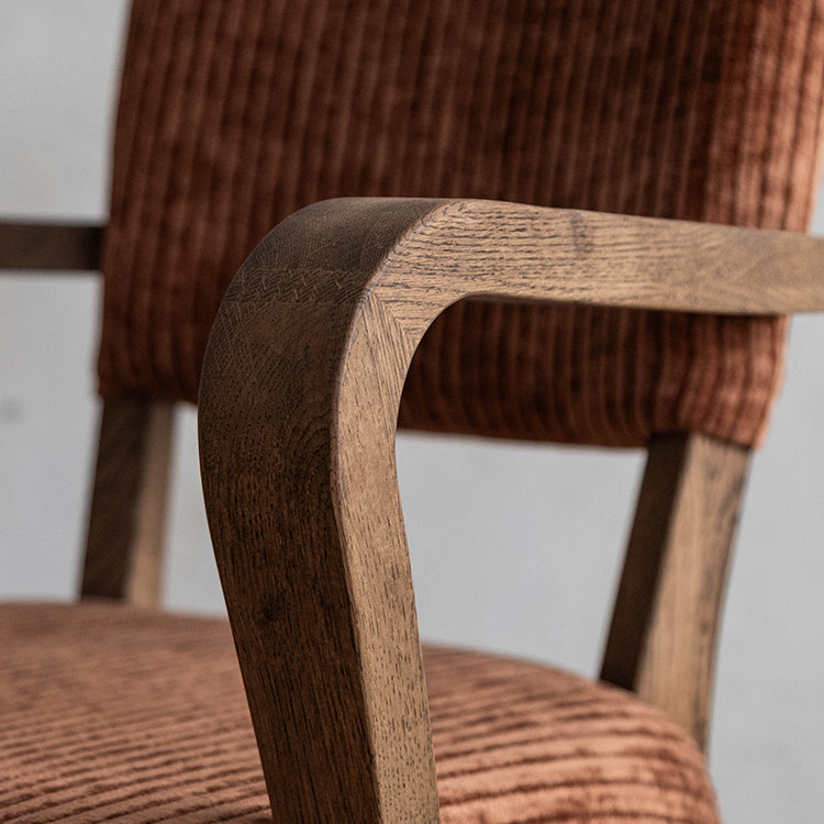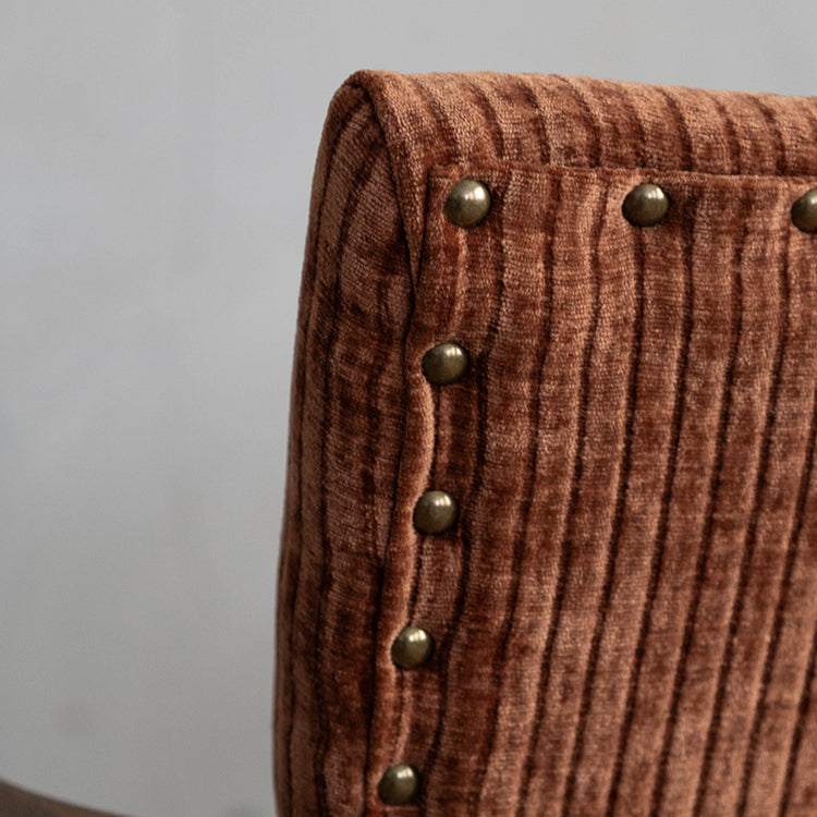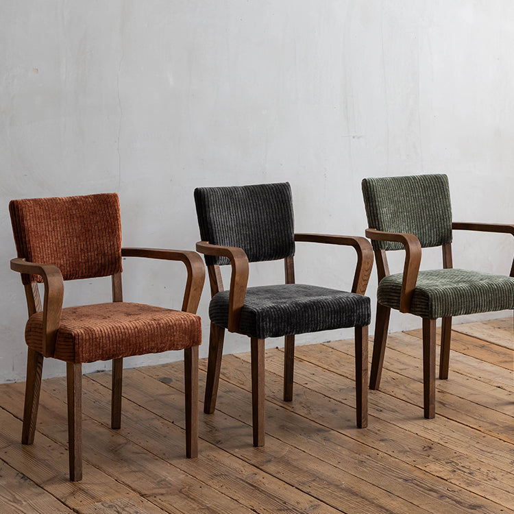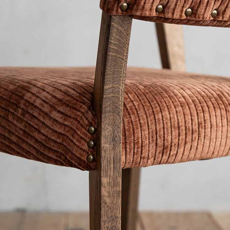 商品情報 シンプルなフォルムに、背面に施された鋲と曲線を描く肘のデザインがアクセントになっています。ヴィンテージ感のあるミドルブラウンの木フレームが素朴で無骨な雰囲気を演出します。