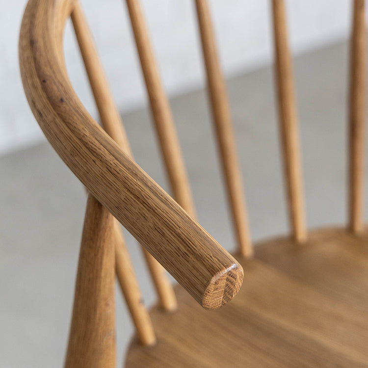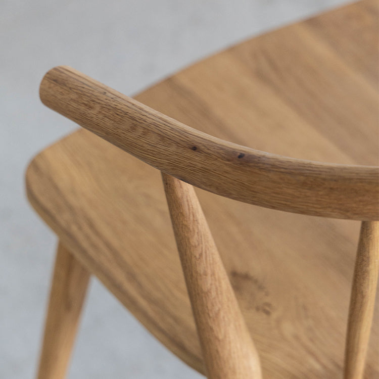 | 商品情報 | 美しい木目と温かみのある風合いが特徴のオーク材を使用し、背中と肘掛けが一体化した合理的なデザインのチェアです。丸みのある背のフォルムがしっかりと身体を包み込みます。温もりを感じるLBRとモダンでスタイリッシュなBKの2色からお選びいただけます。 |