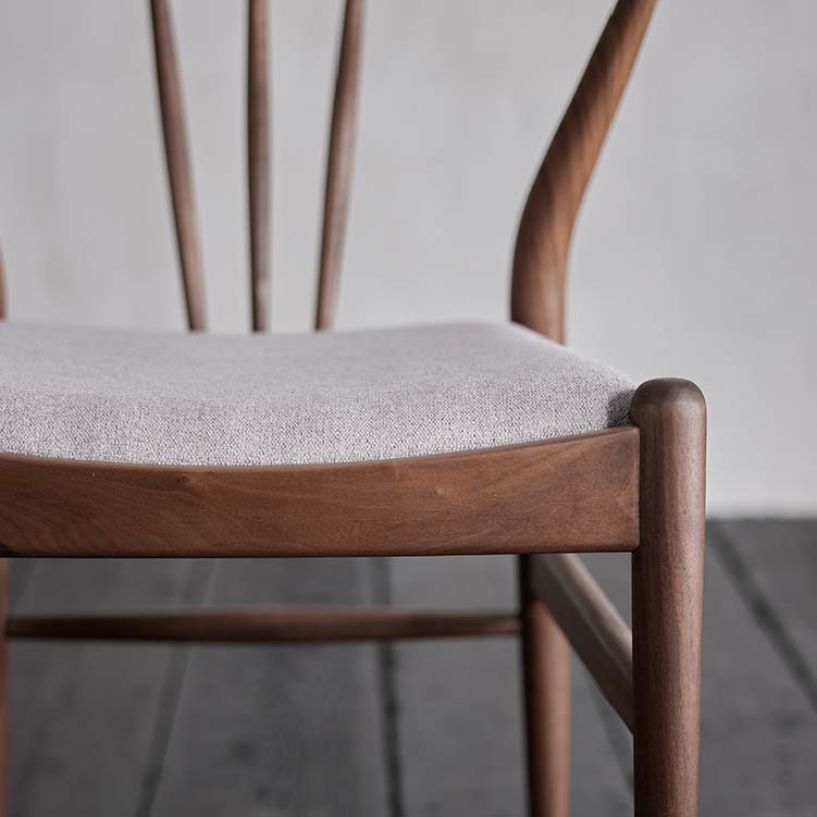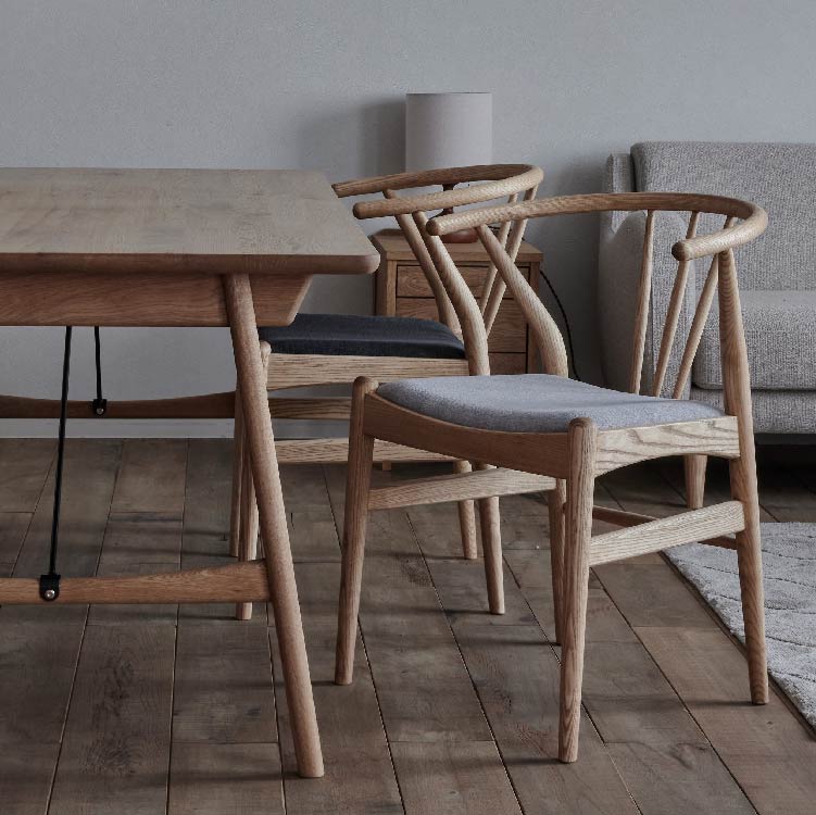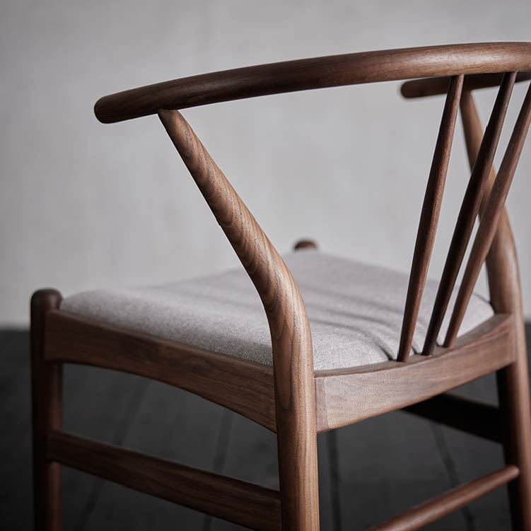 商品情報 美しい曲線を描いたイロハチェア。特徴のある背のスポークは背あたりが良く、身体をしっかりとを支えてくれます。温かみのあるオーク材と高級感のあるウォールナットの2種類からお選びいただけます。