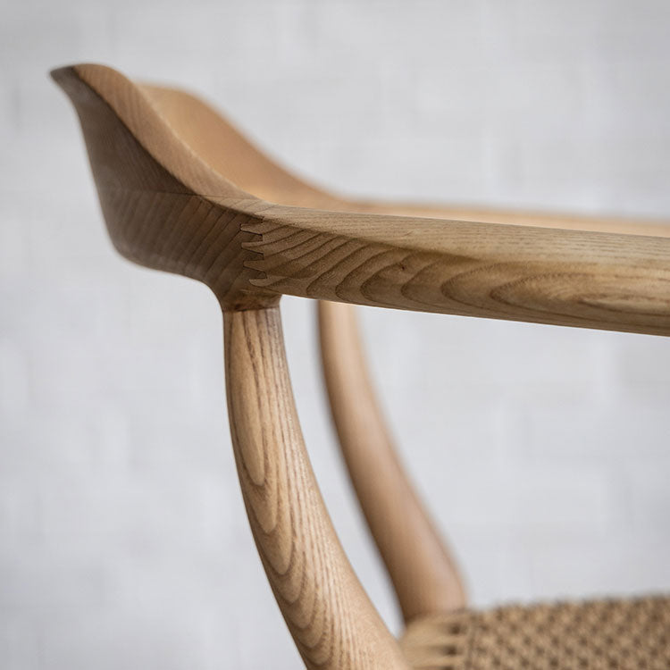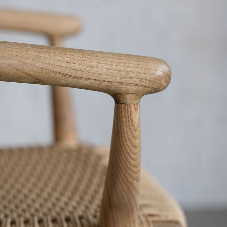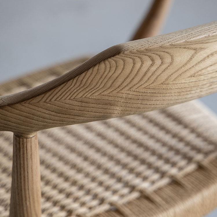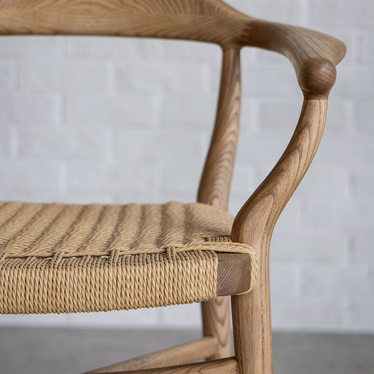 | 商品情報 | 流線的なデザインと天然素材の優しい風合いが調和したチェア。背もたれからアーム部分へとつながるカーブが身体を優しく支え、ヴィンテージの雰囲気が漂うペーパーコードはしっかりと身体にフィットし馴染みます。ペーパーコード特有の経年変化を楽しみながら、長く愛用いただきたいチェアです。 |