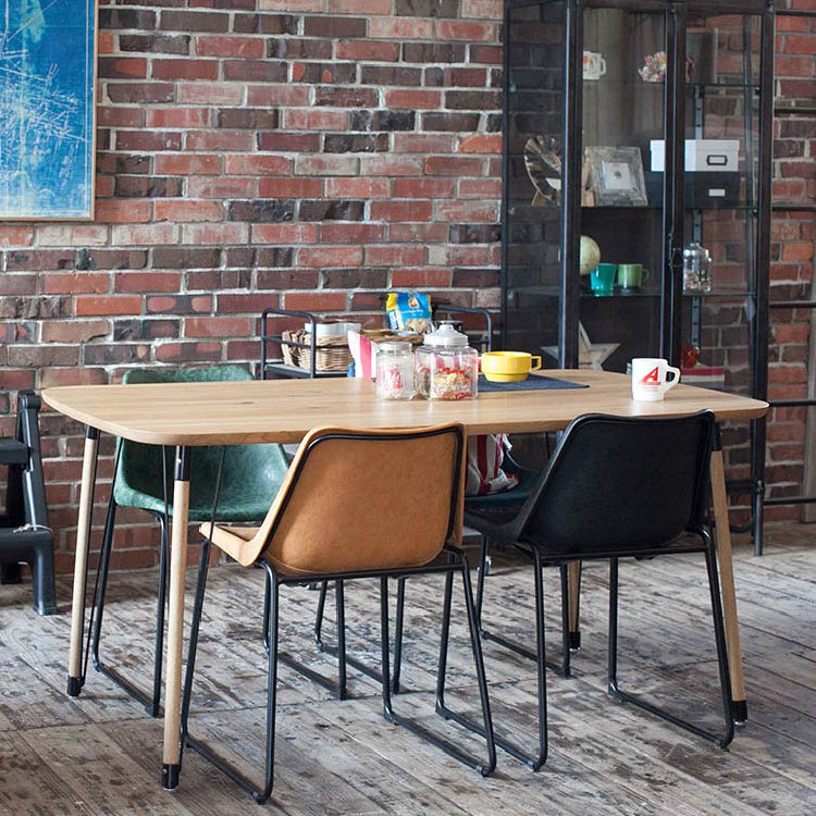 | 商品情報 | ヴィンテージレザー調に加工された風合いのあるPU座面、黒の細脚の組合せがモダンな印象のチェアです。カラーバリエーションが豊富なので組み合せも楽しめます。 |