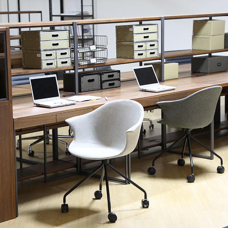 商品情報 ニュアンスカラーでユニークなフォルムが目を引くモダンなデスク チェア。滑らかな曲線を描いて背から肘までつながるシームレスな デザインは、無機質になりがちなオフィスに柔らかくユーモアのあ るムードをもたらします。有機的な座面は、背中から腰を優しくホー ルドしてくれます。