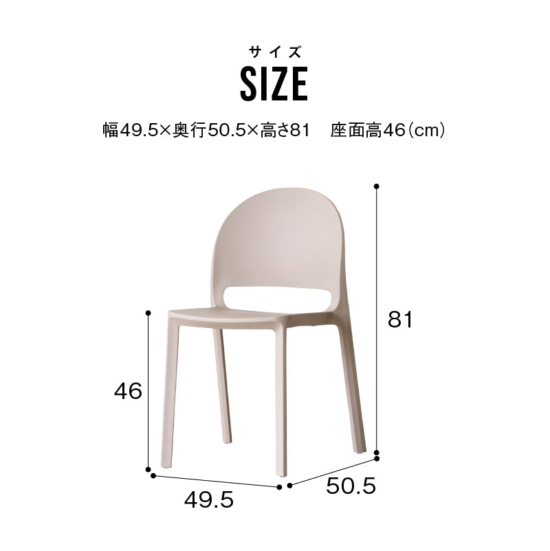 | 商品情報 | 柔らかい印象の曲線的なフォルムで、スタイリッシュなデザインが特徴のチェア。優しいカラーリングは、ナチュラルからモダンまで幅広いスタイルに調和します。耐水性のあるPP樹脂素材のため、屋外でもご使用いただけます。表面は汚れても軽く拭くだけで、 お手入れが簡単です。 使わない時は、複数あっても場所を取らないスタッキング仕様です。 |