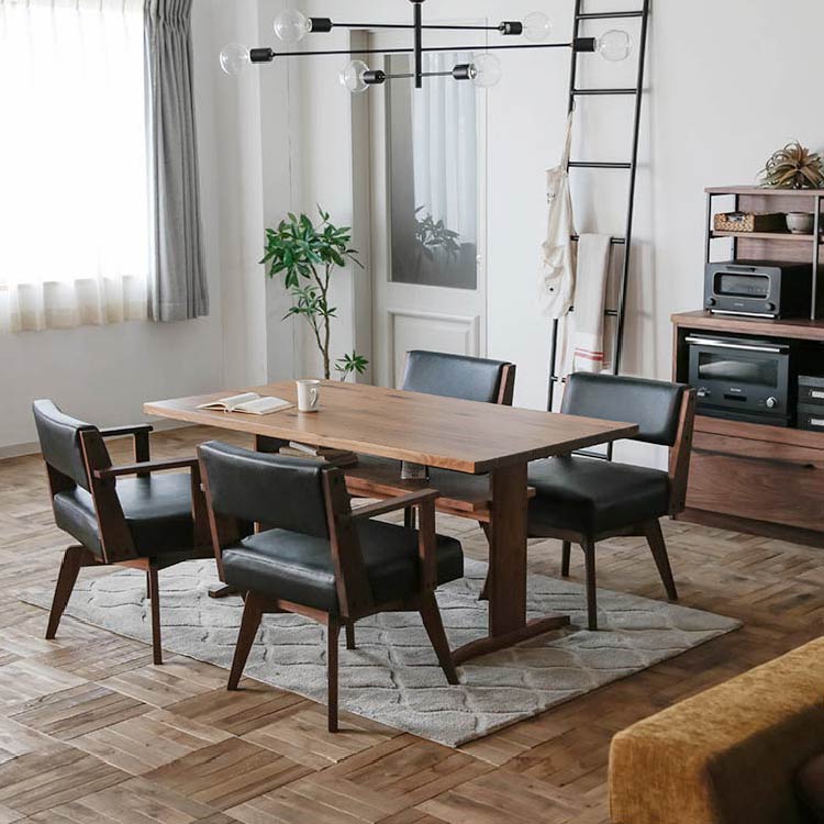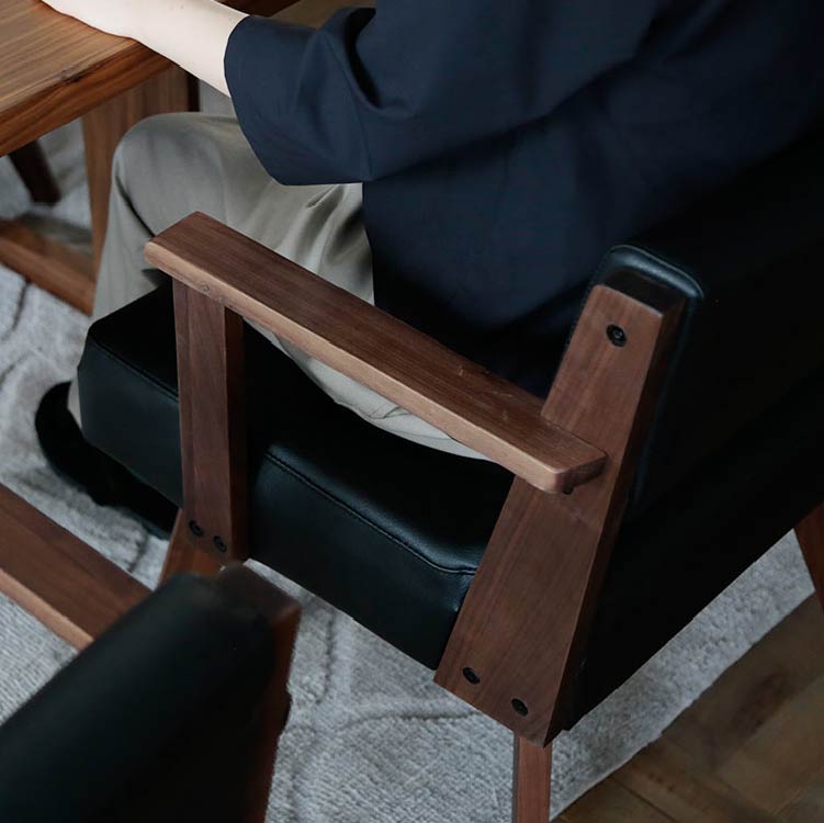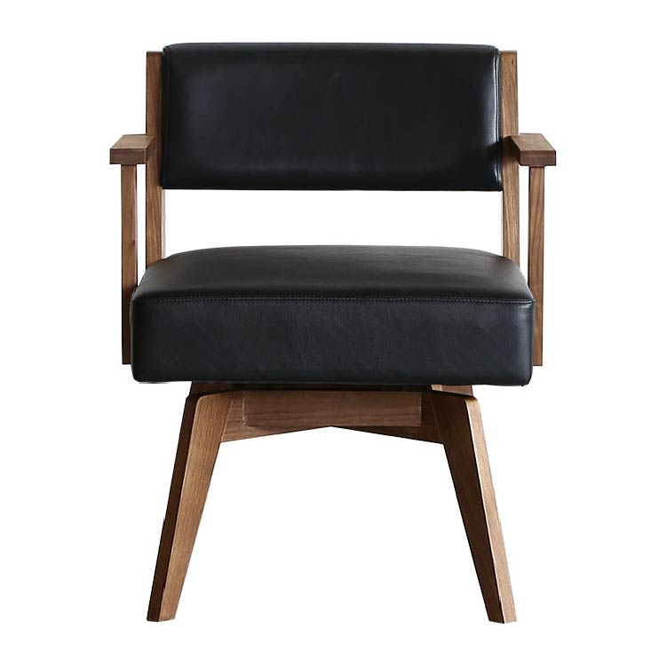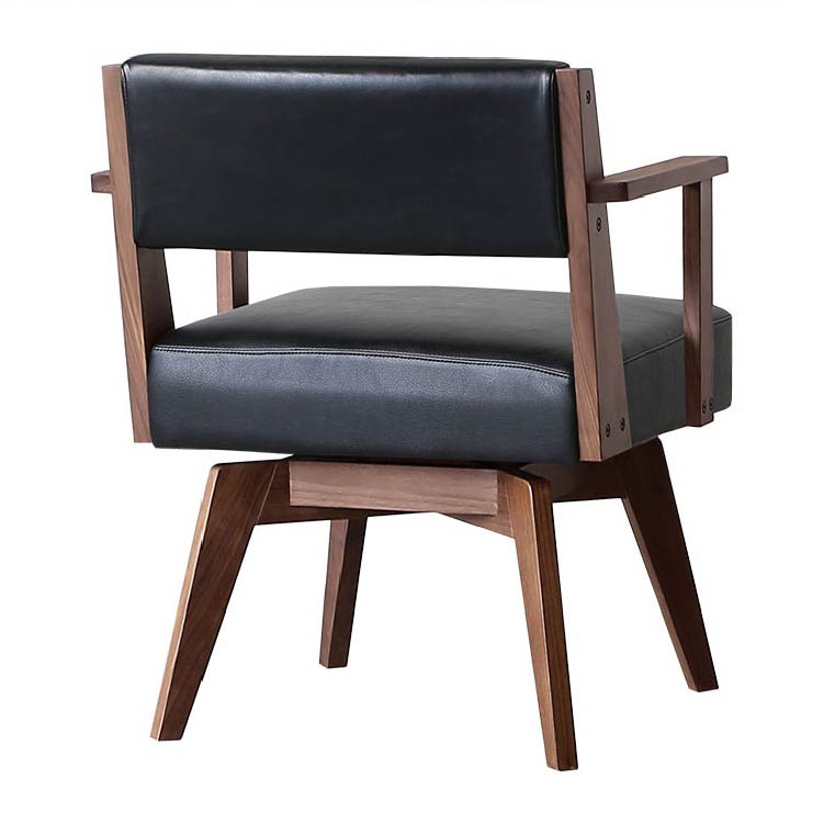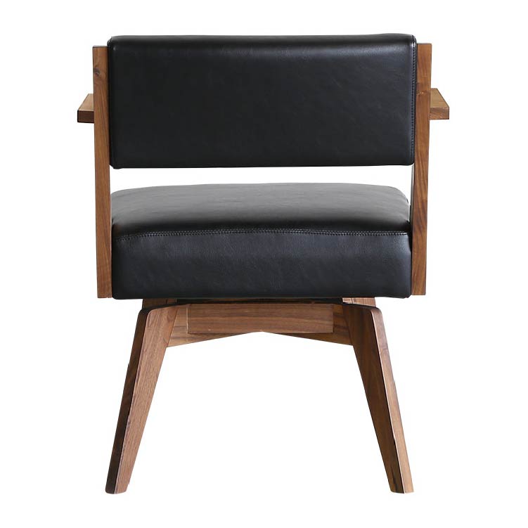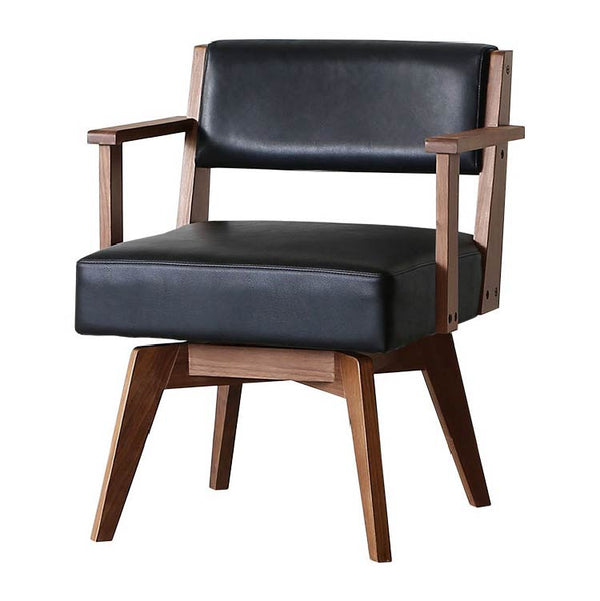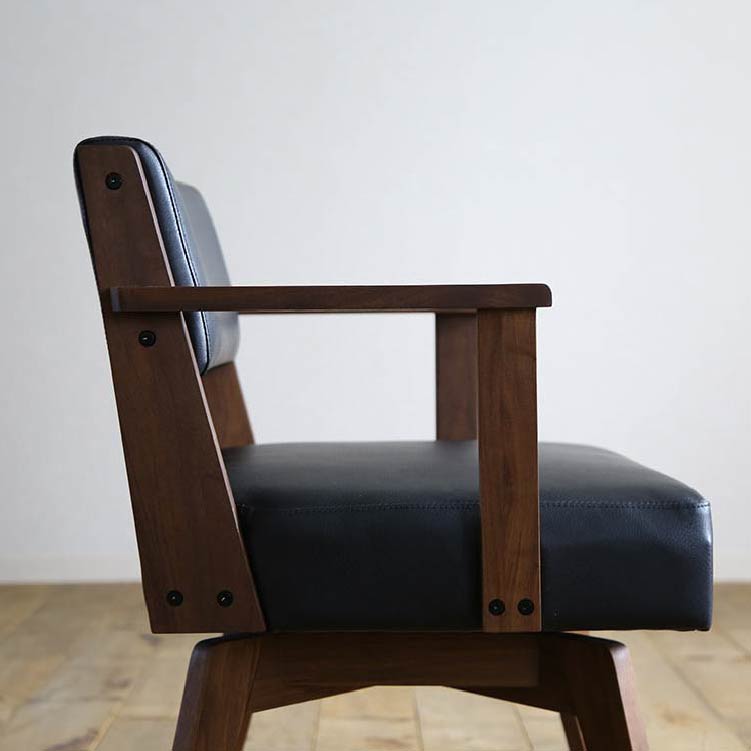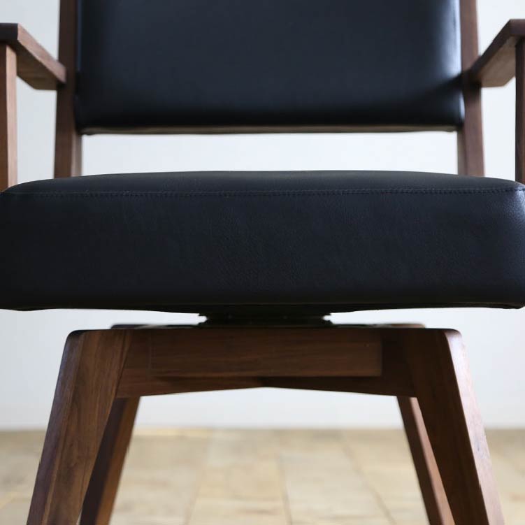 カイン 回転式ダイニングチェア 肘付 ウォールナット/PVCブラック