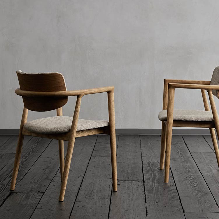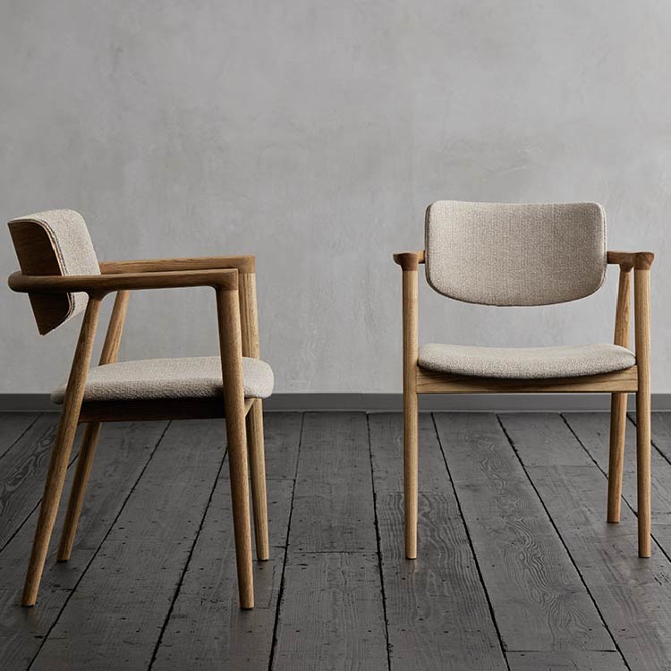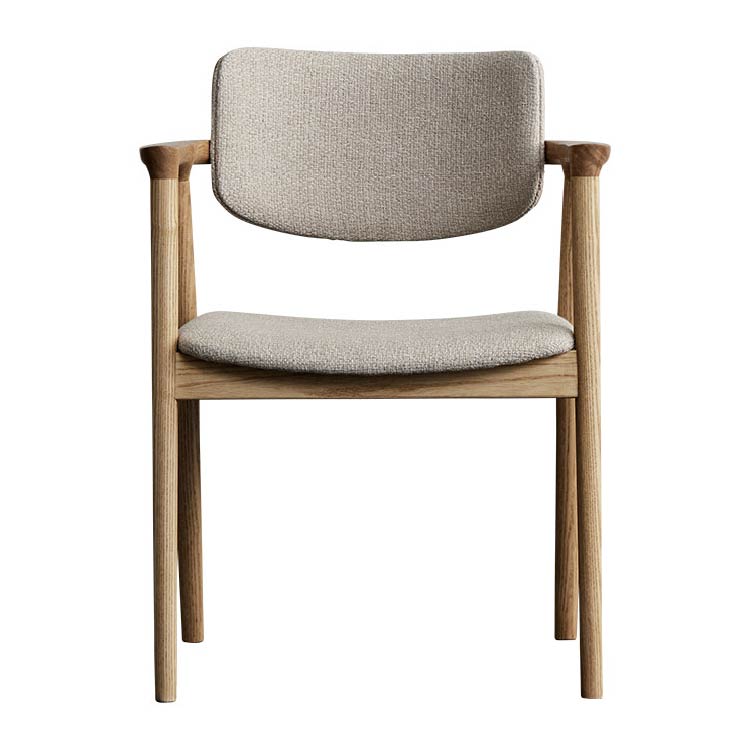 | 商品情報 | 曲線を帯びたなめらかな肌当たりのフレームを、すっきりと洗練されたフォルム にまとめあげた美しいチェア。オイルで自然な風合いに仕上げた天然木が、食 卓に温かみのある雰囲気を与えます。温かみのある色合いの、太めの混色糸 を織りこんだ優しい手触りのファブリック2色展開です。 |