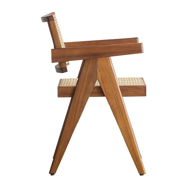 | 商品情報 | ラタン×チーク、異なる自然素材を組み合わせたチェアです。タイムレスなデザインとチークウッドならではの美しい木色がつくる洗練した雰囲気が特徴です。背と座には、かごめ編みで織られたラタンを使うことで抜け感のある柔らかな空間を演出します。 |
