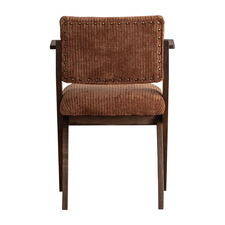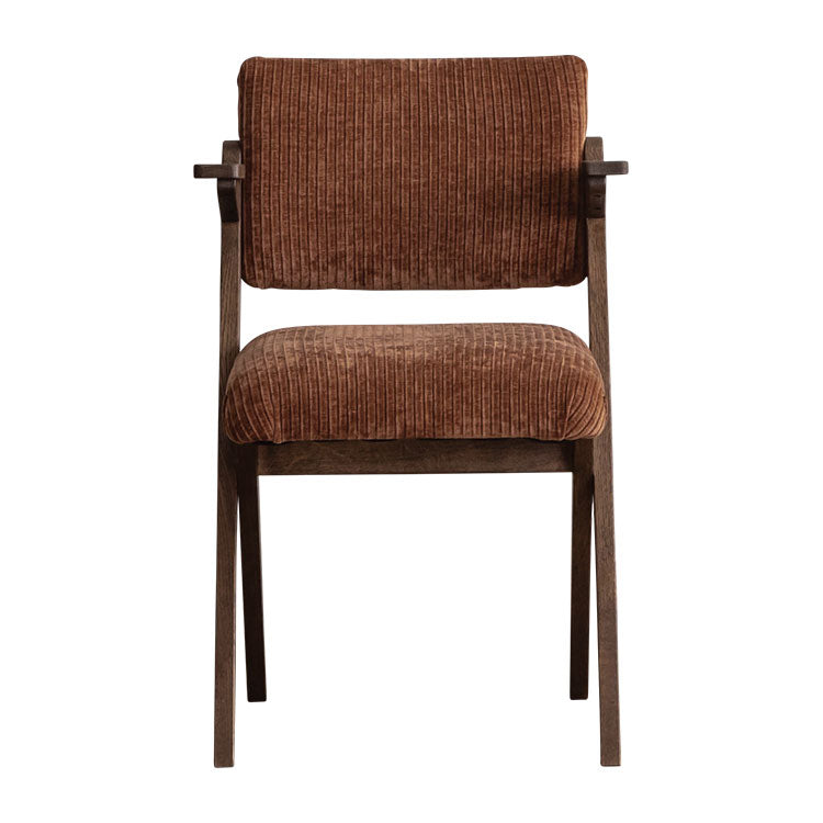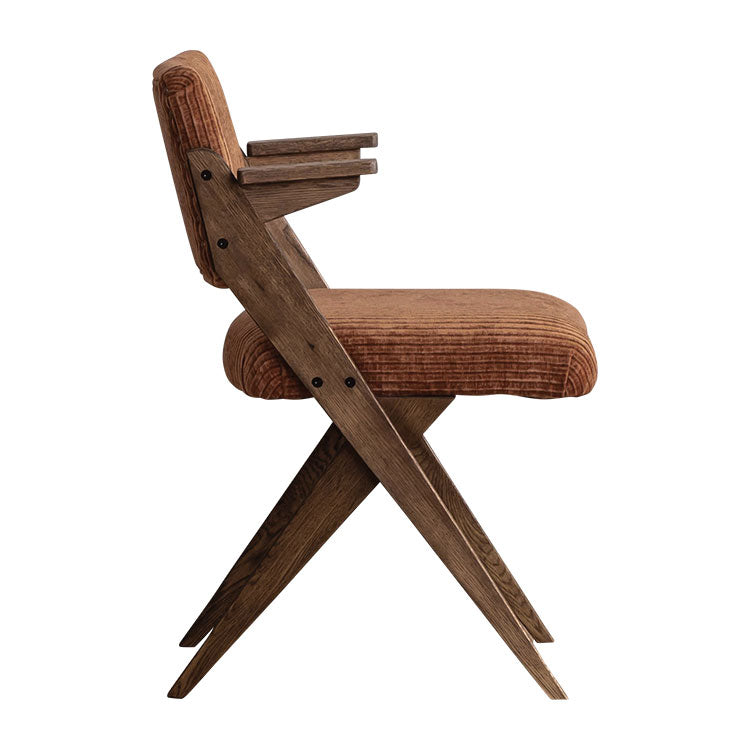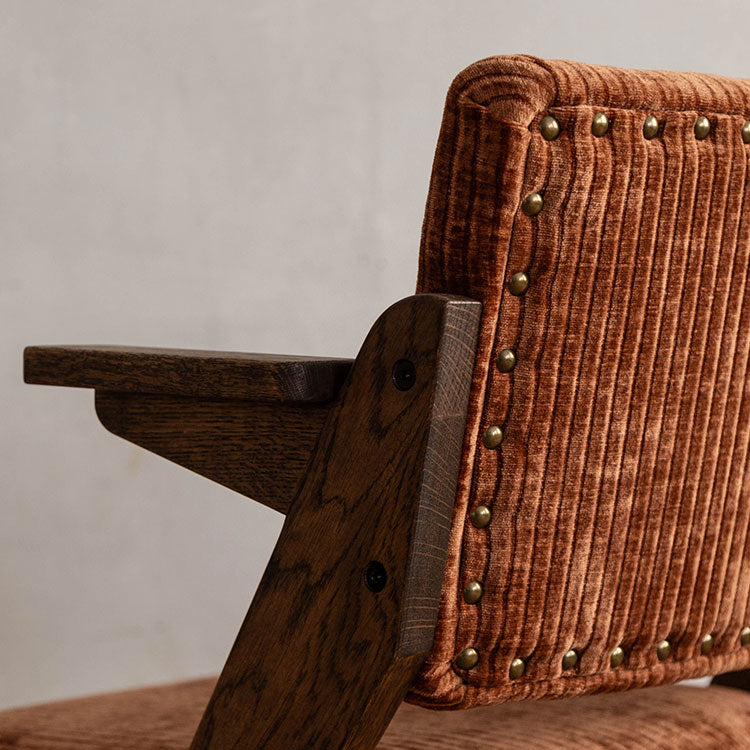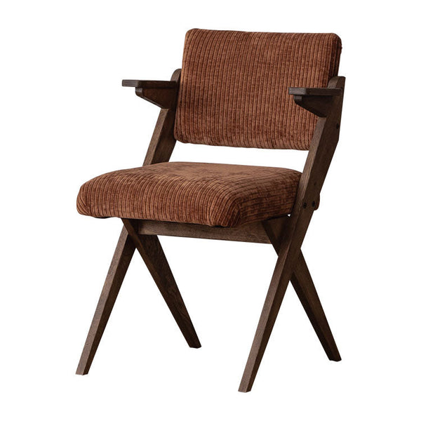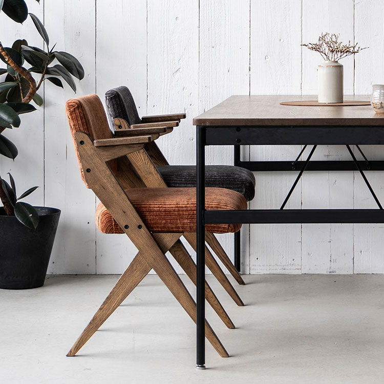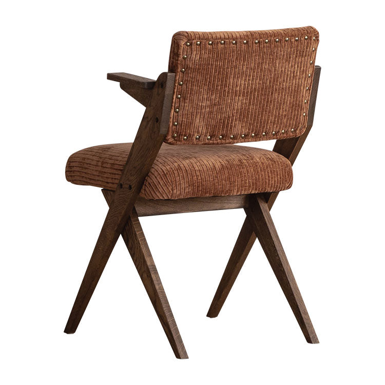| 商品情報 | 木のシャープなクロス脚が特徴的なチェア。背面に施された鋲もアクセントになっています。部屋のテイストに合わせてお選びいただけます。 |