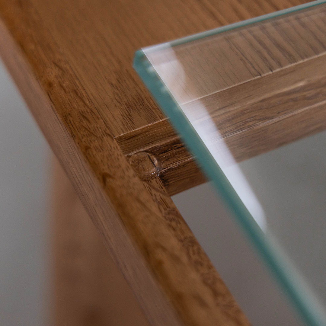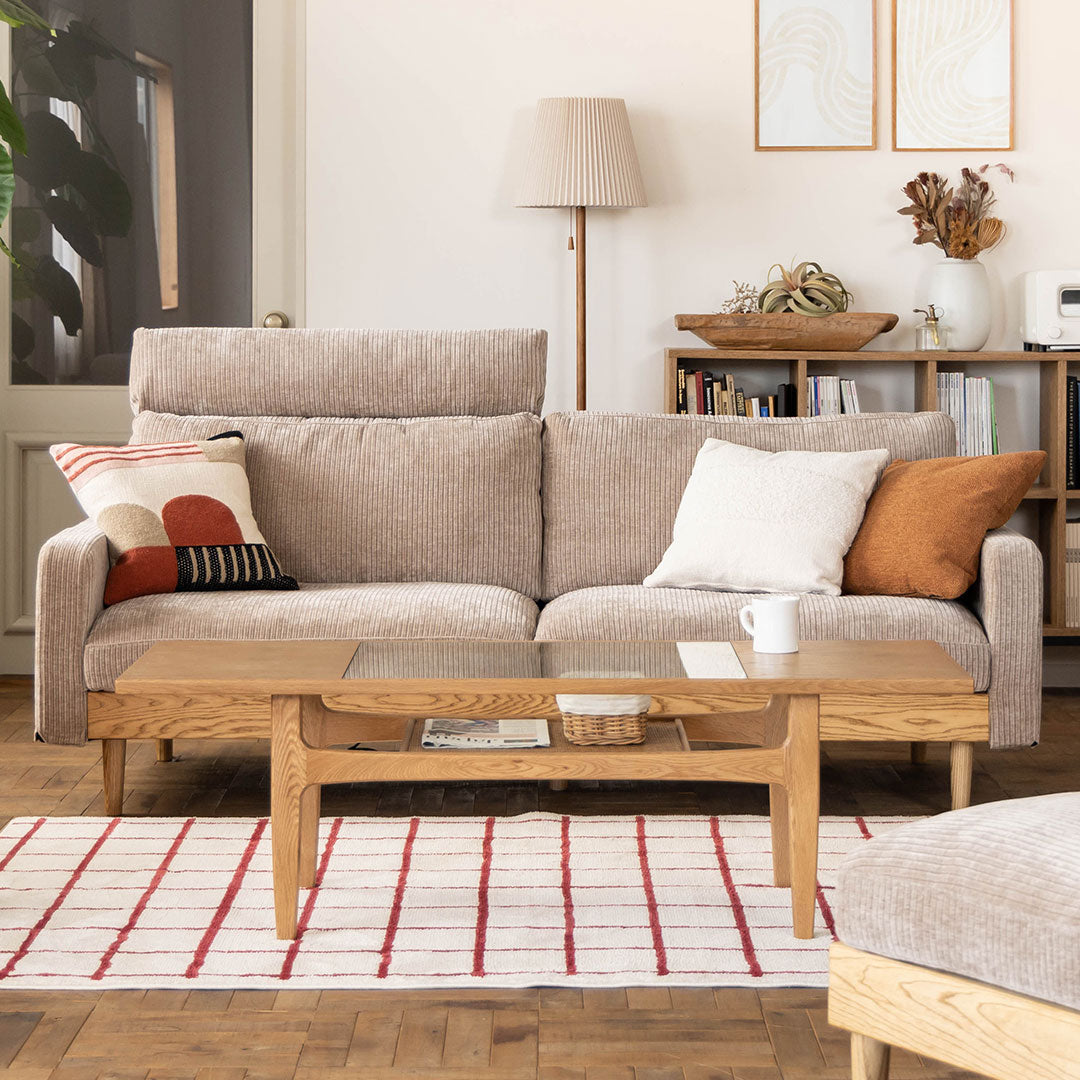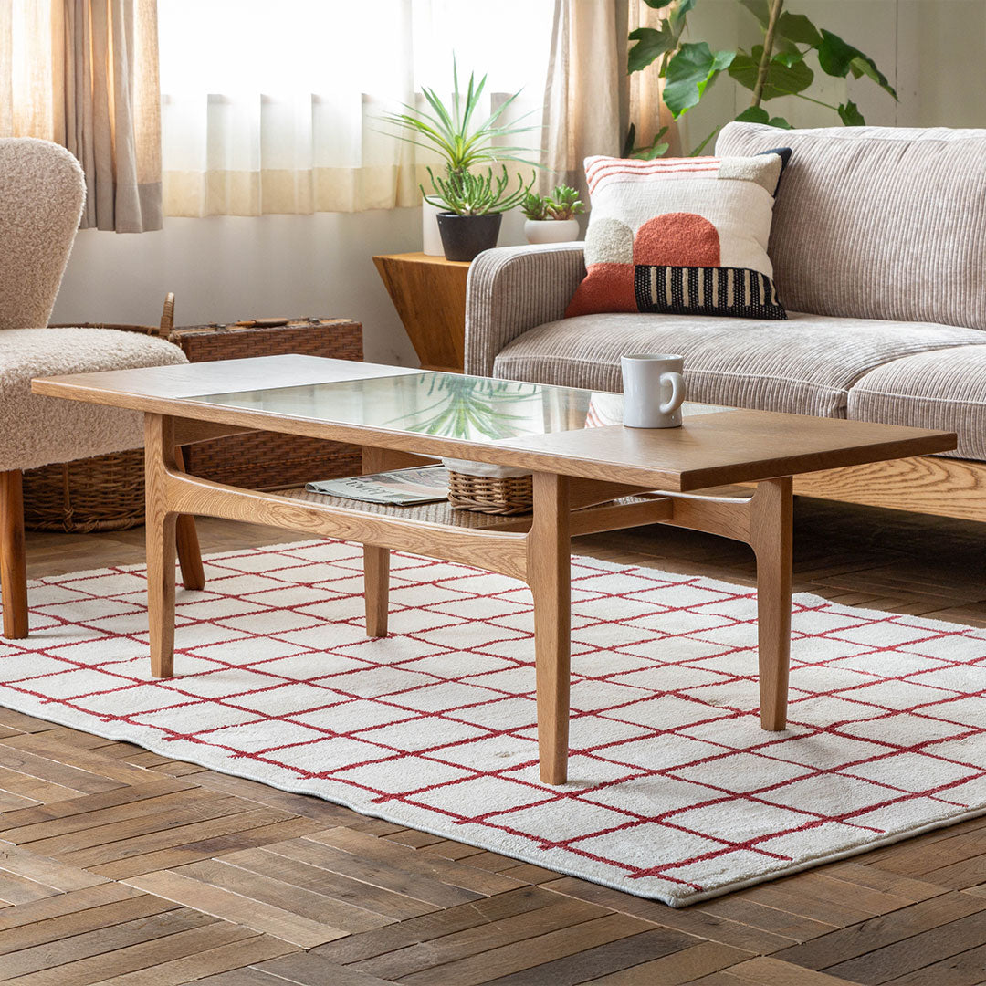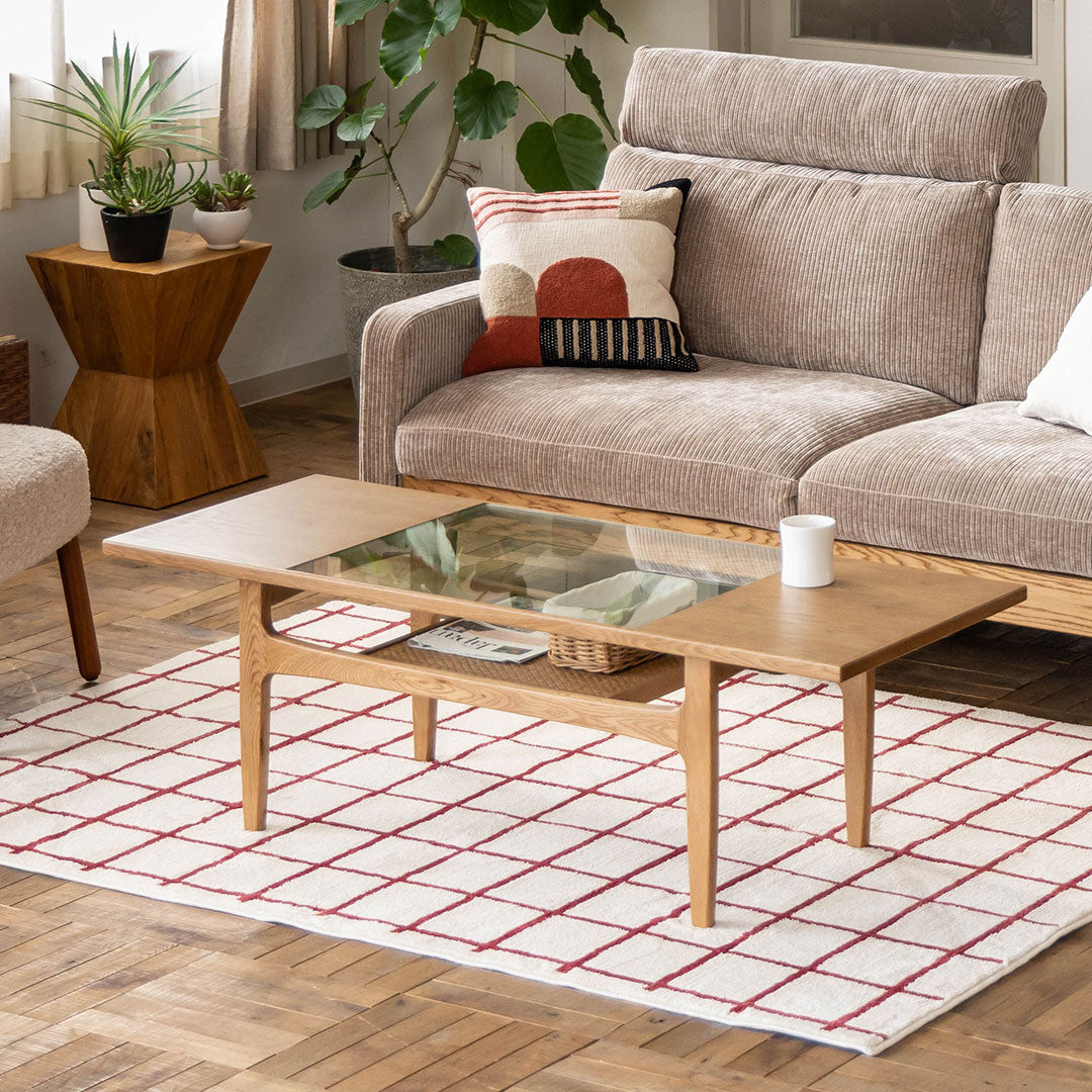 | 商品情報 | オーク材、 ガラス、 編み込みの籐を使用したエキゾチックなコーヒーテーブルです。 細部のデザインまでこだわり、すっきりと抜け感のある印象に仕上げました。 |