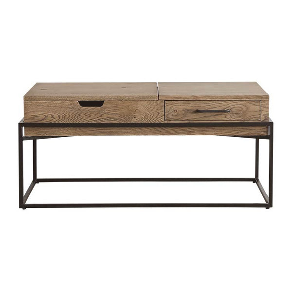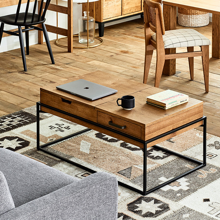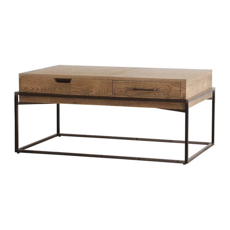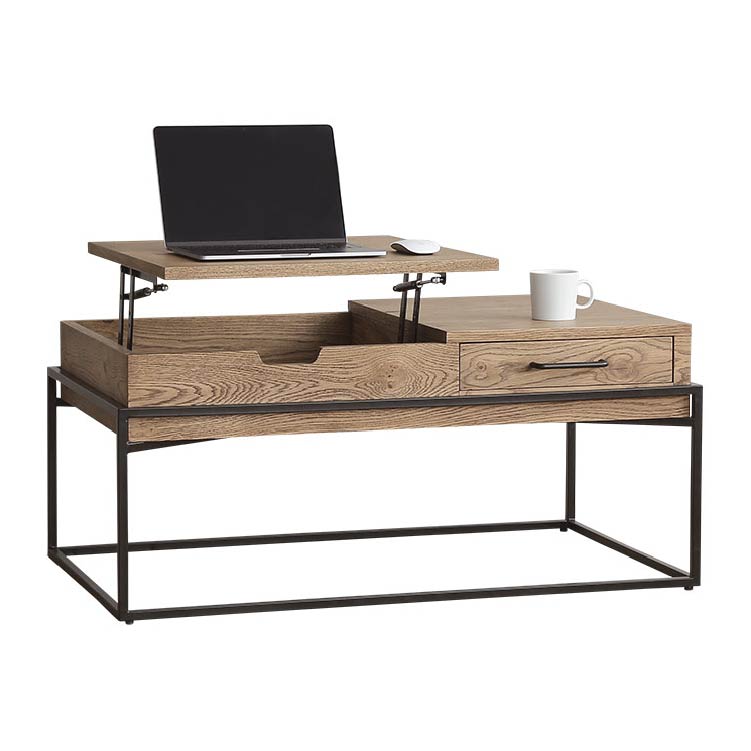 | 商品情報 | リビングでの利便性を追求した多機能なコーヒーテーブルです。天 板の片側をもちあげるとソファに座った状態でもつかいやすい高さ に昇降します。ちょっとした軽作業や食事にも便利です。昇降天板 の下は収納スペースに、また天板の片側は引出しになっているの で収納力もありテーブルの上をすっきりと保つことができます。 |