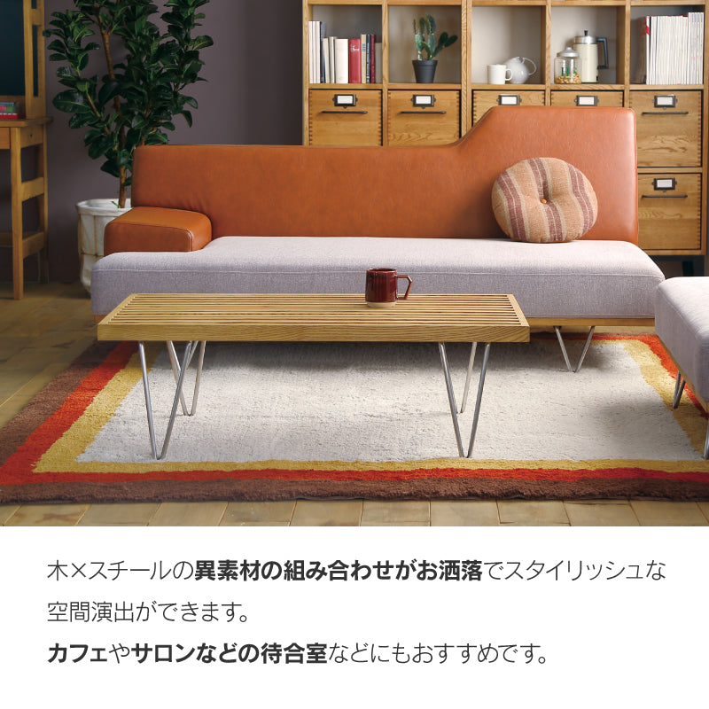 商品情報 | スタイリッシュでモダンなイットシリーズ。テーブルは木を格子状に組んだ天板デザイン。オプションのガラス天板をセットすれば、デザインを損なわず作業性UPさせられます。脚部はミッドセンチュリーデザインを取り入れた、抜け感のある洗練されたデザインを取り入れています。ソファ・スツール・コーヒーテーブルを組み合わせて、複数パターンのスタイリッシュな空間演出ができます。 |