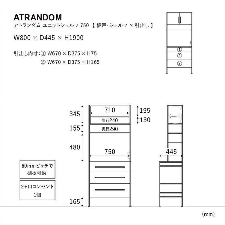 | 商品サイズ | 幅157.5 × 奥行44.5 × 高さ190.0cm |
