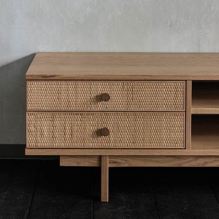 | 商品情報 | ラタン×木のナチュラルでラグジュアリーな雰囲気のテレビボードで す。異なる素材を使い、シンプルでお部屋に馴染みやすいデザイン に仕上げました。サイズは2種類の幅から選ぶことができます。生活 スタイルに合わせてお選びください。 |