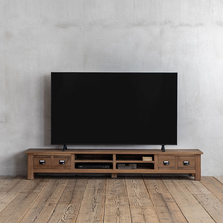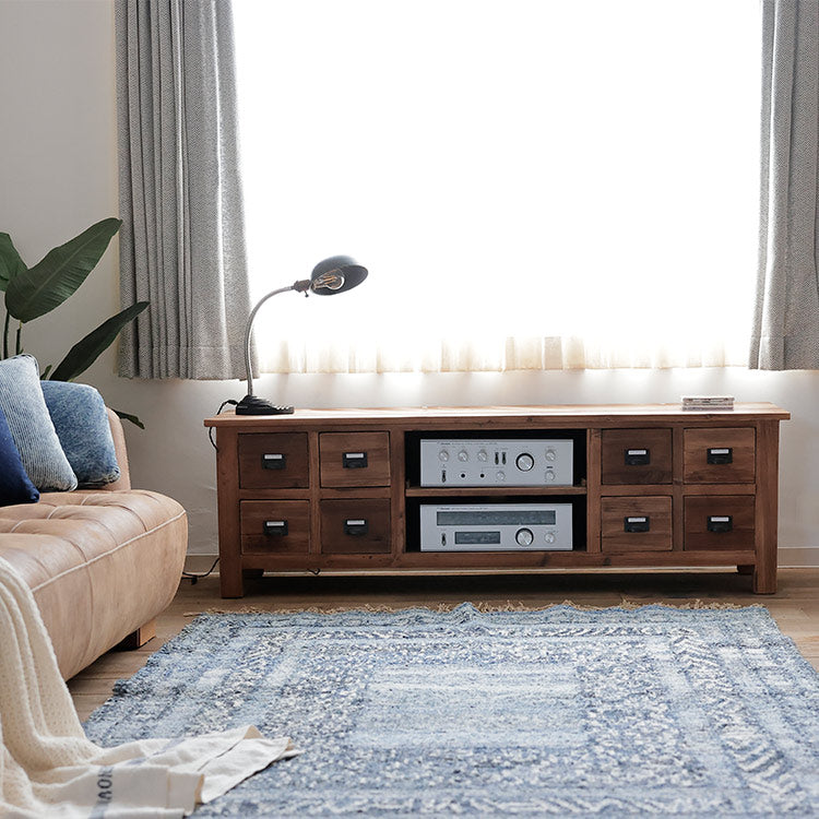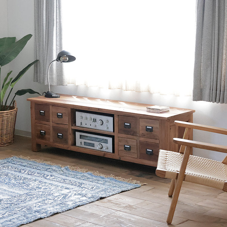 使用している古材にはその特性と風合いを生かして表現するような加工を施しております。そのため「天板の凹凸」「補修跡」「木材の表情が一点一点異なる」「色の濃淡割れや釘穴、連結穴の跡」「板の継ぎ目が浮き出て見えるようなライン」などの特徴がございます。長年ご使用いただくことを想定して強度や構造を設計・製造しておりますので、安心してご利用いただくことができます。