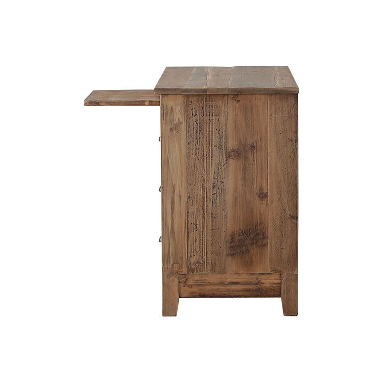 使用している古材にはその特性と風合いを生かして表現するような加工を施しております。そのため「天板の凹凸」「補修跡」「木材の表情が一点一点異なる」「色の濃淡割れや釘穴、連結穴の跡」「板の継ぎ目が浮き出て見えるようなライン」などの特徴がございます。長年ご使用いただくことを想定して強度や構造を設計・製造しておりますので、安心してご利用いただくことができます。